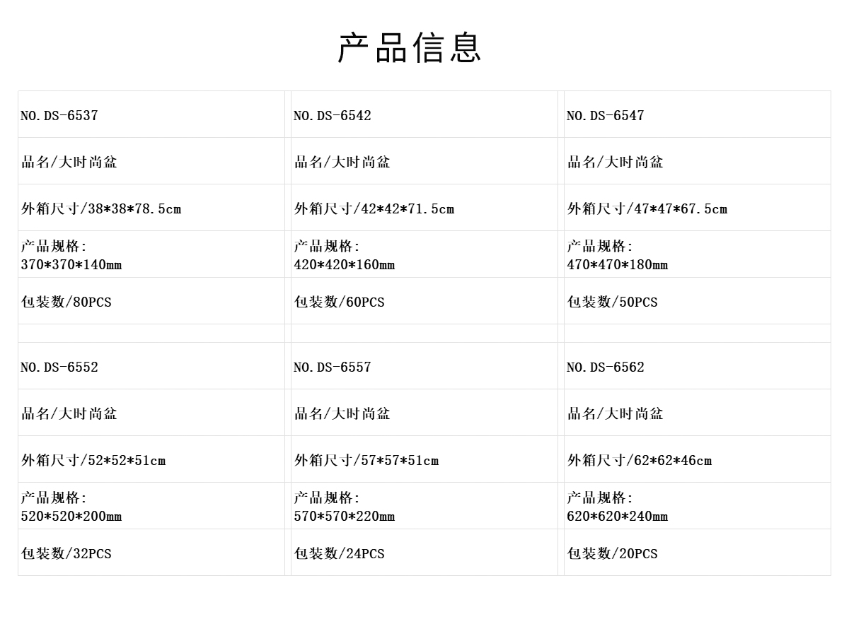 DS-6547:470*470*180mm/DS-6552:520*520*200mm