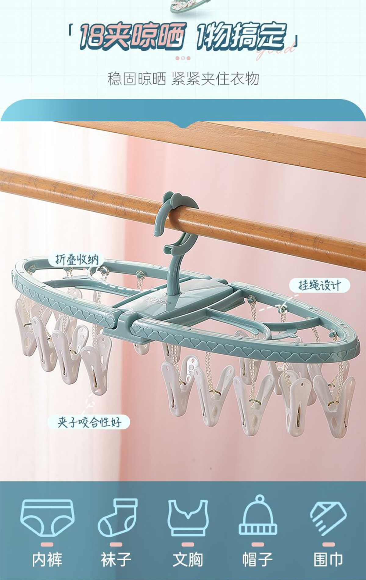 折合晾衣架18夾  2023年新色