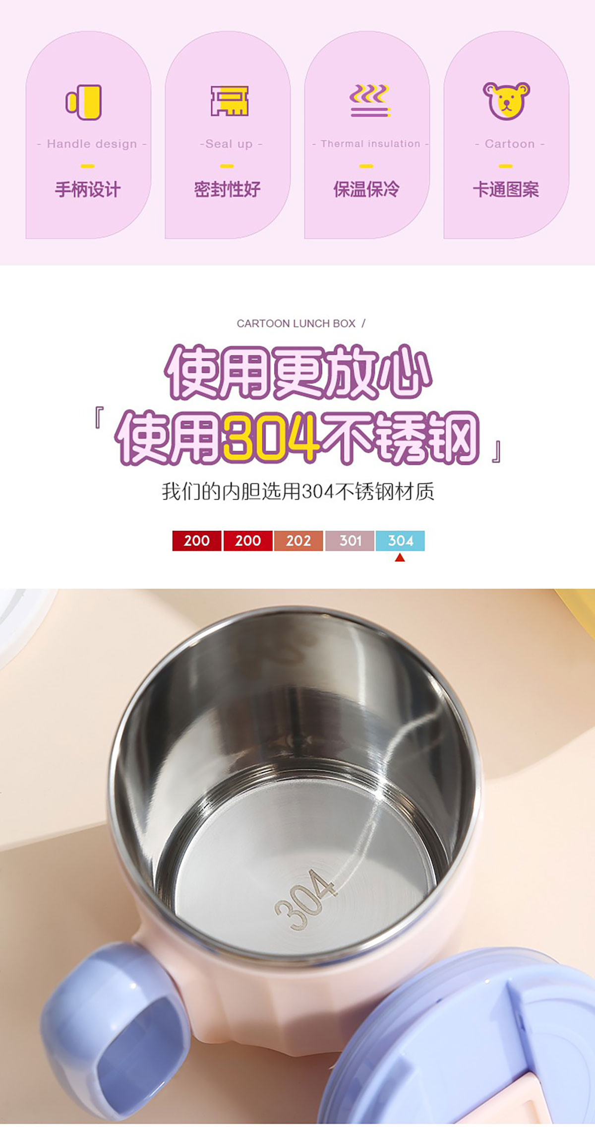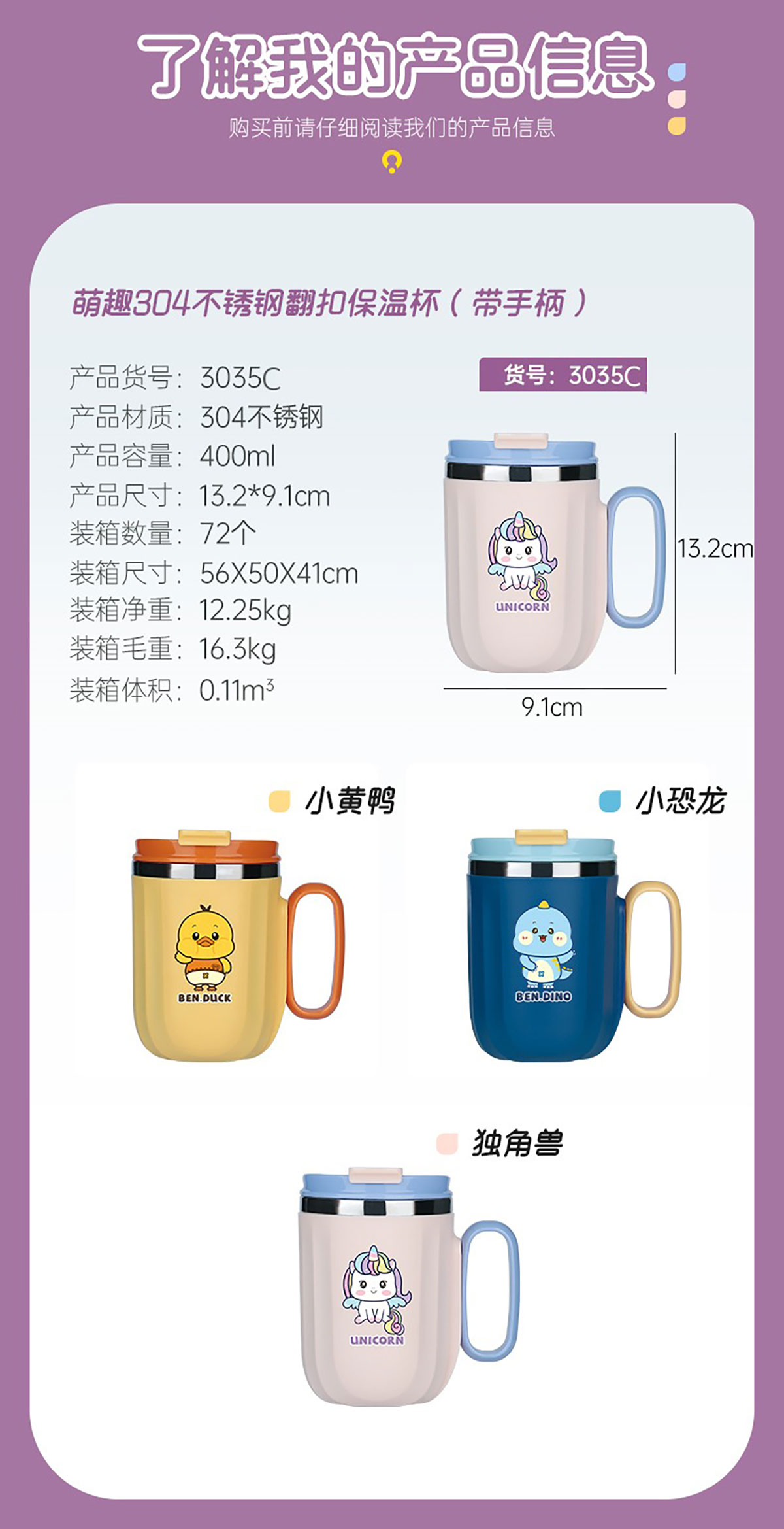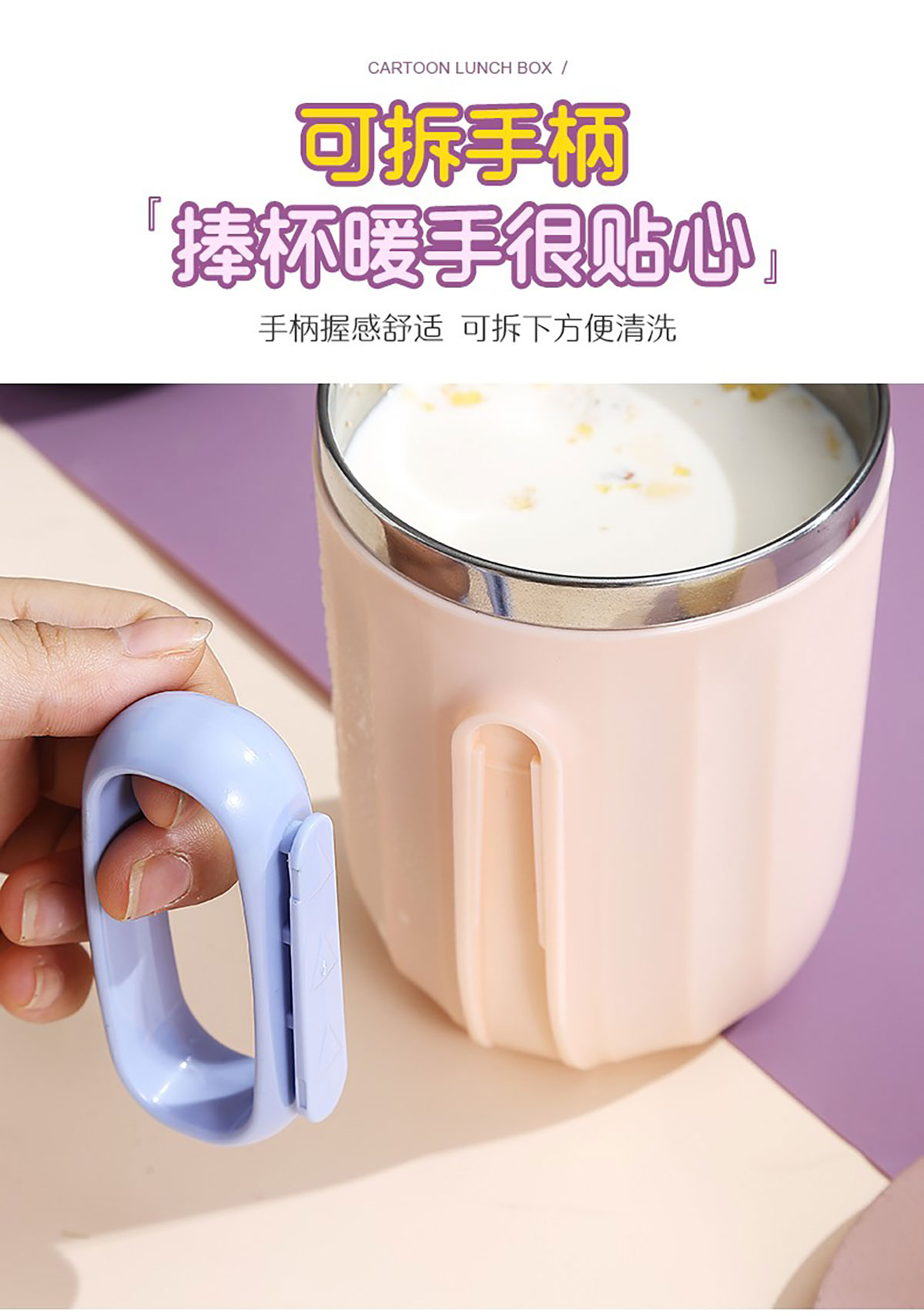 400ml萌趣304不銹鋼翻扣保溫杯(帶手柄)