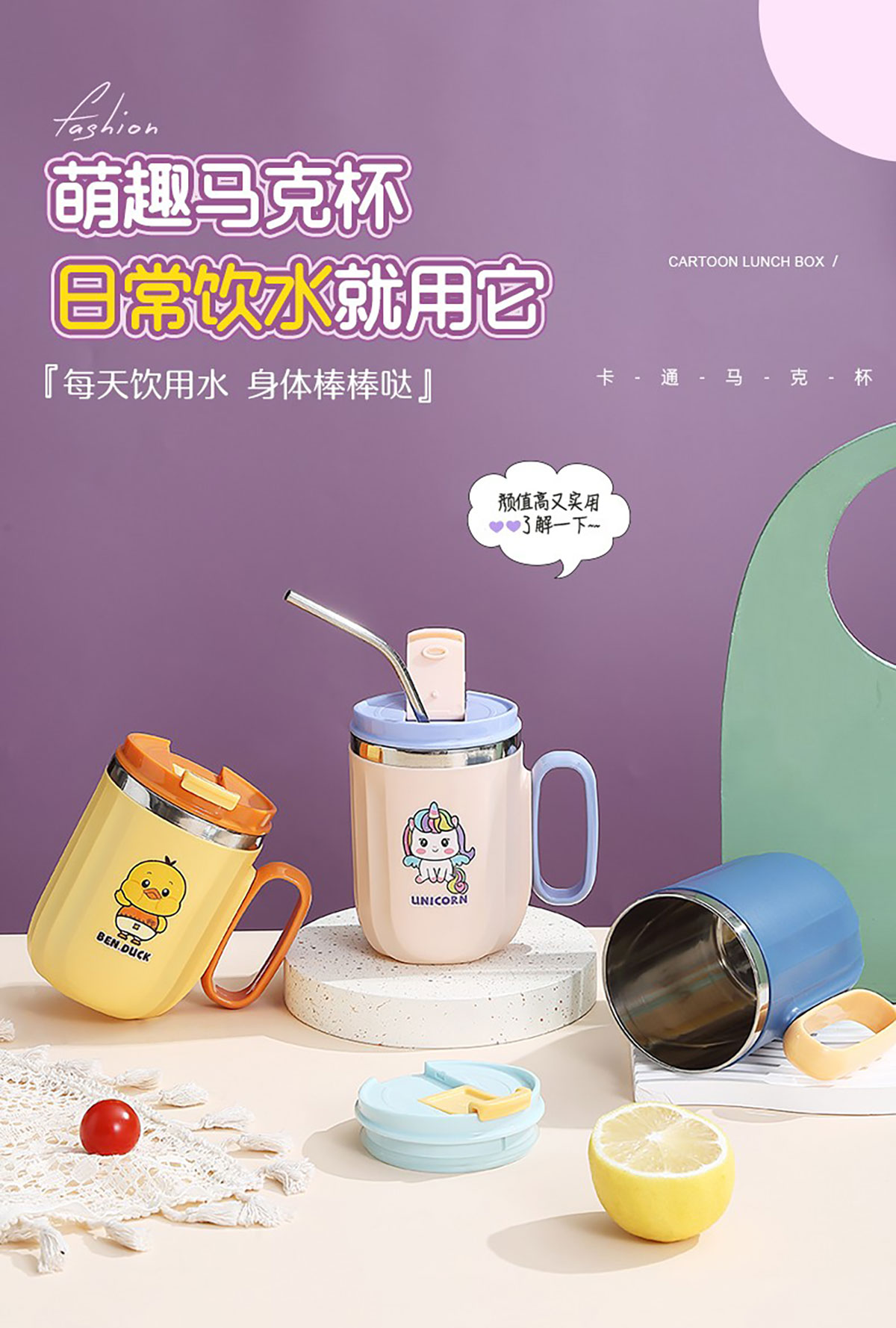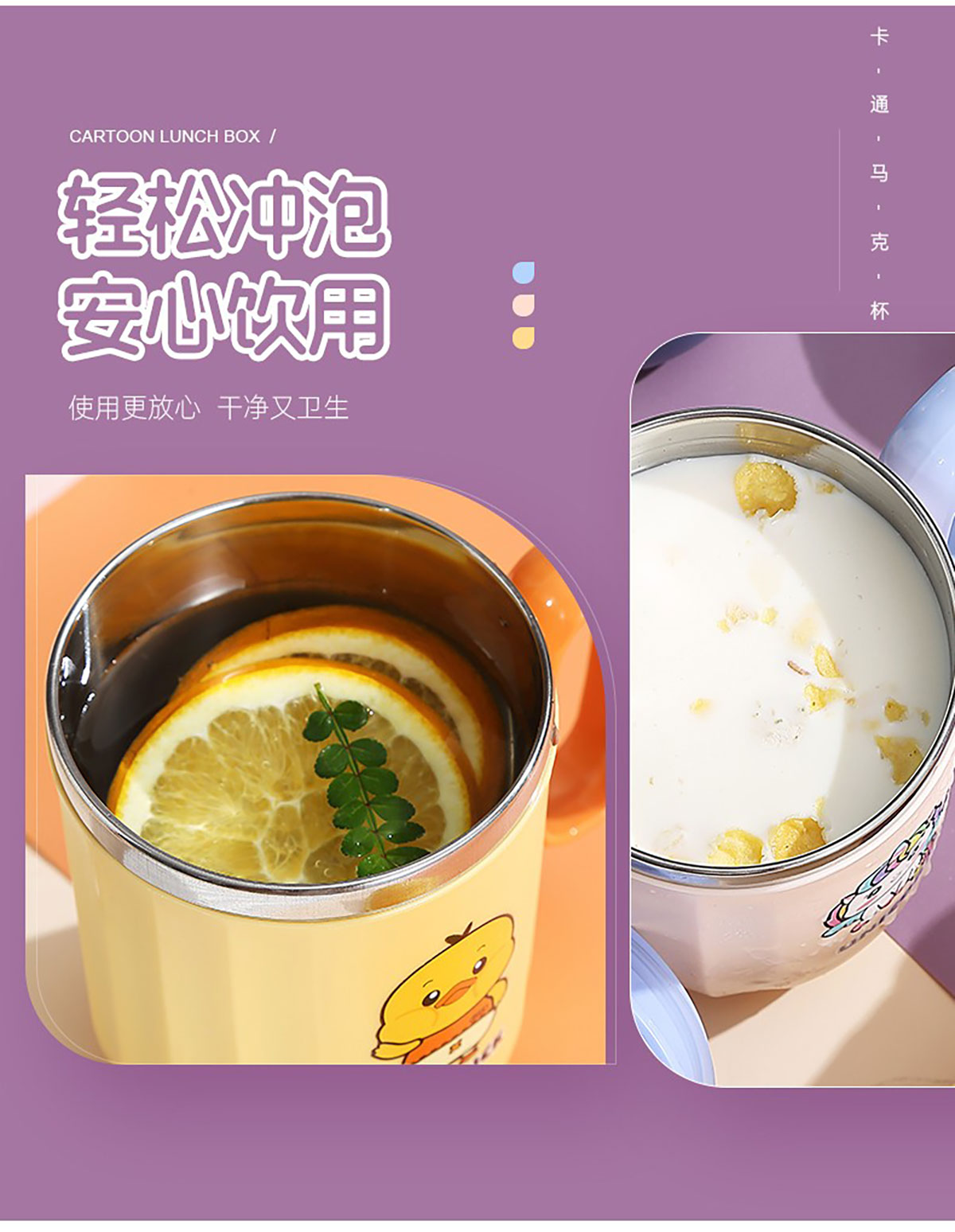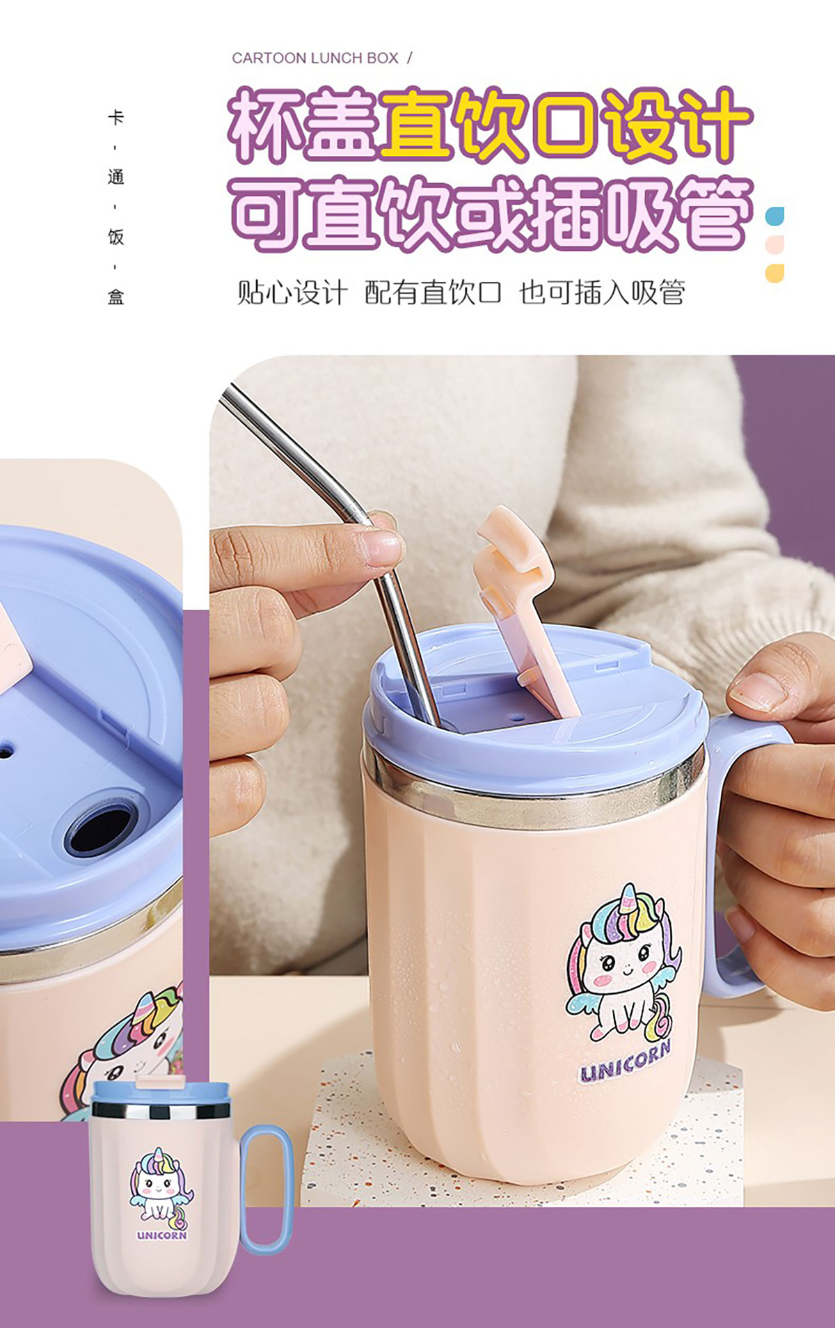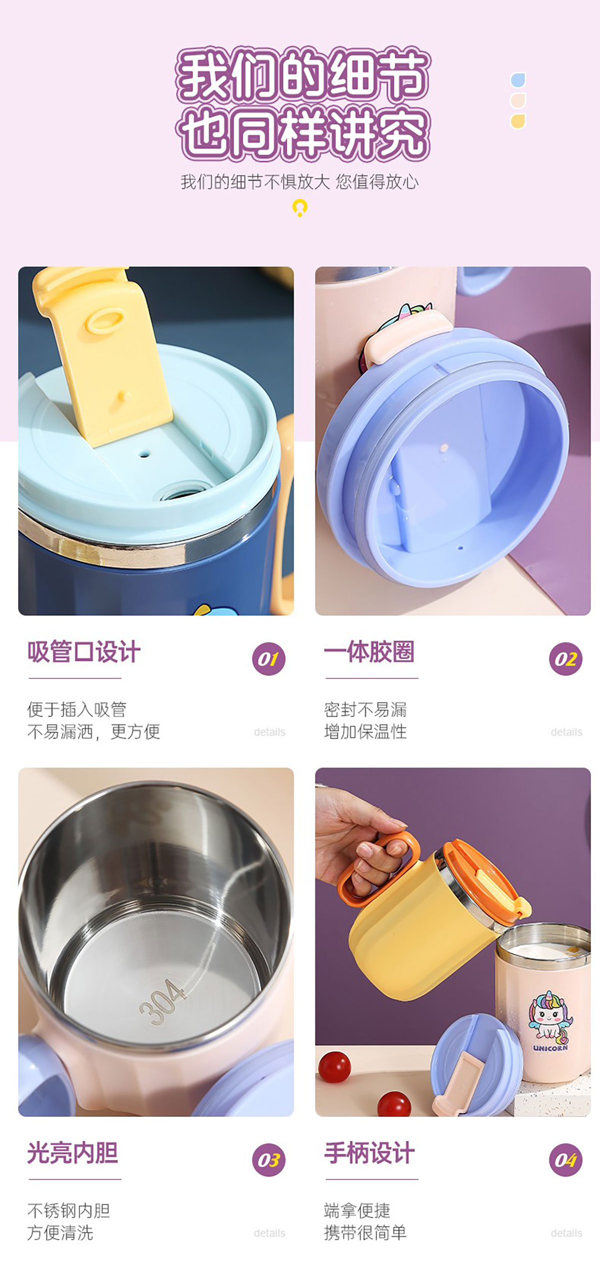 400ml萌趣304不銹鋼翻扣保溫杯(帶手柄)
