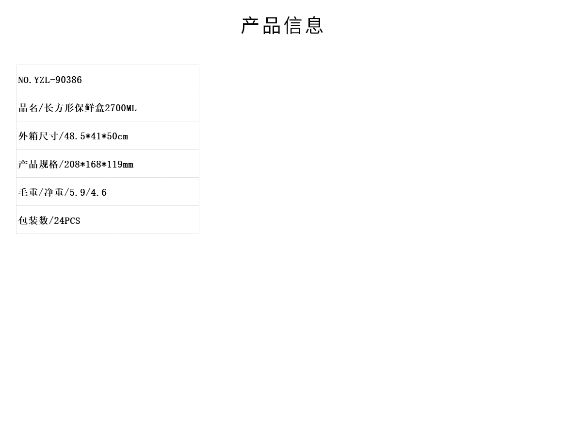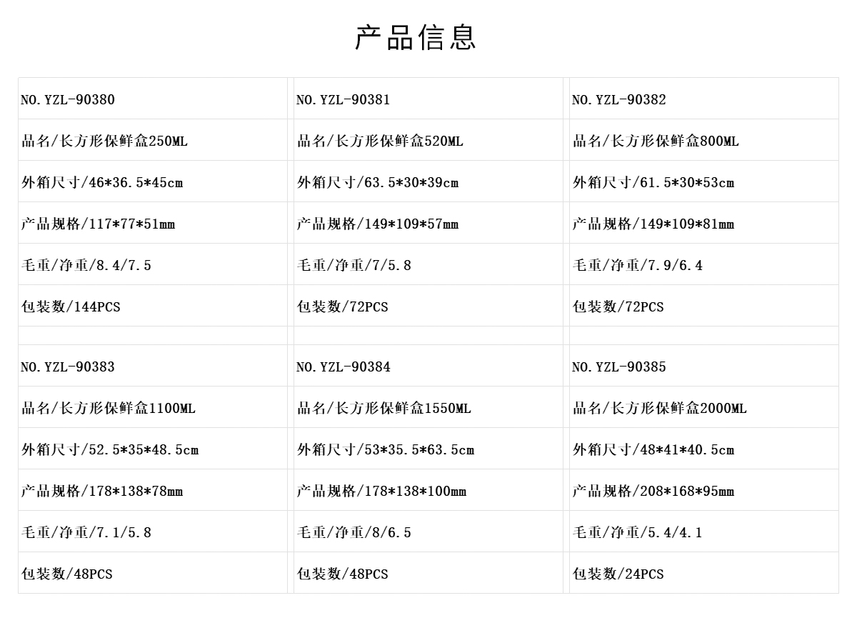 長方形保鮮盒250ML/520ML/800ML/1100ML/1550ML/2000ML/2700ML