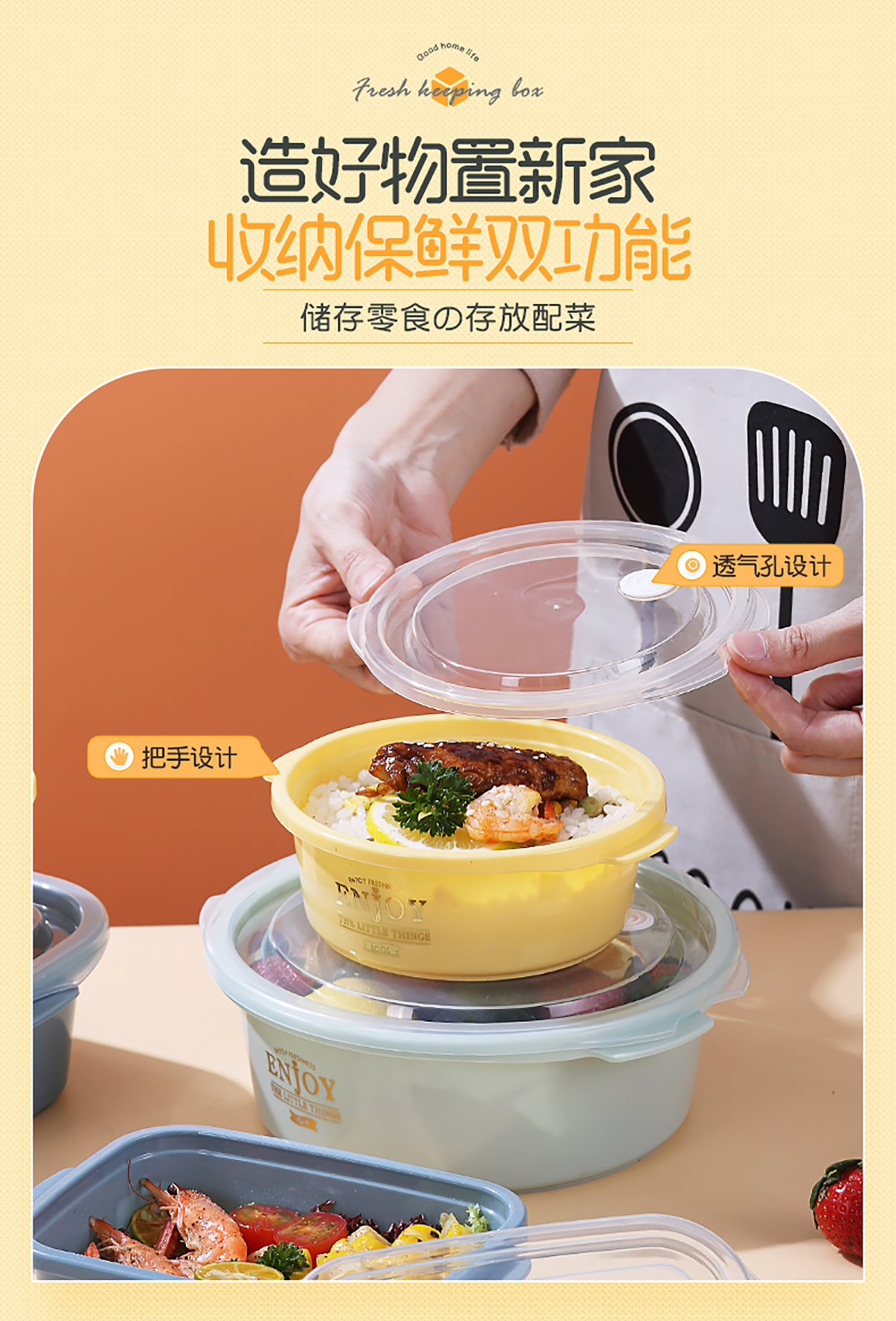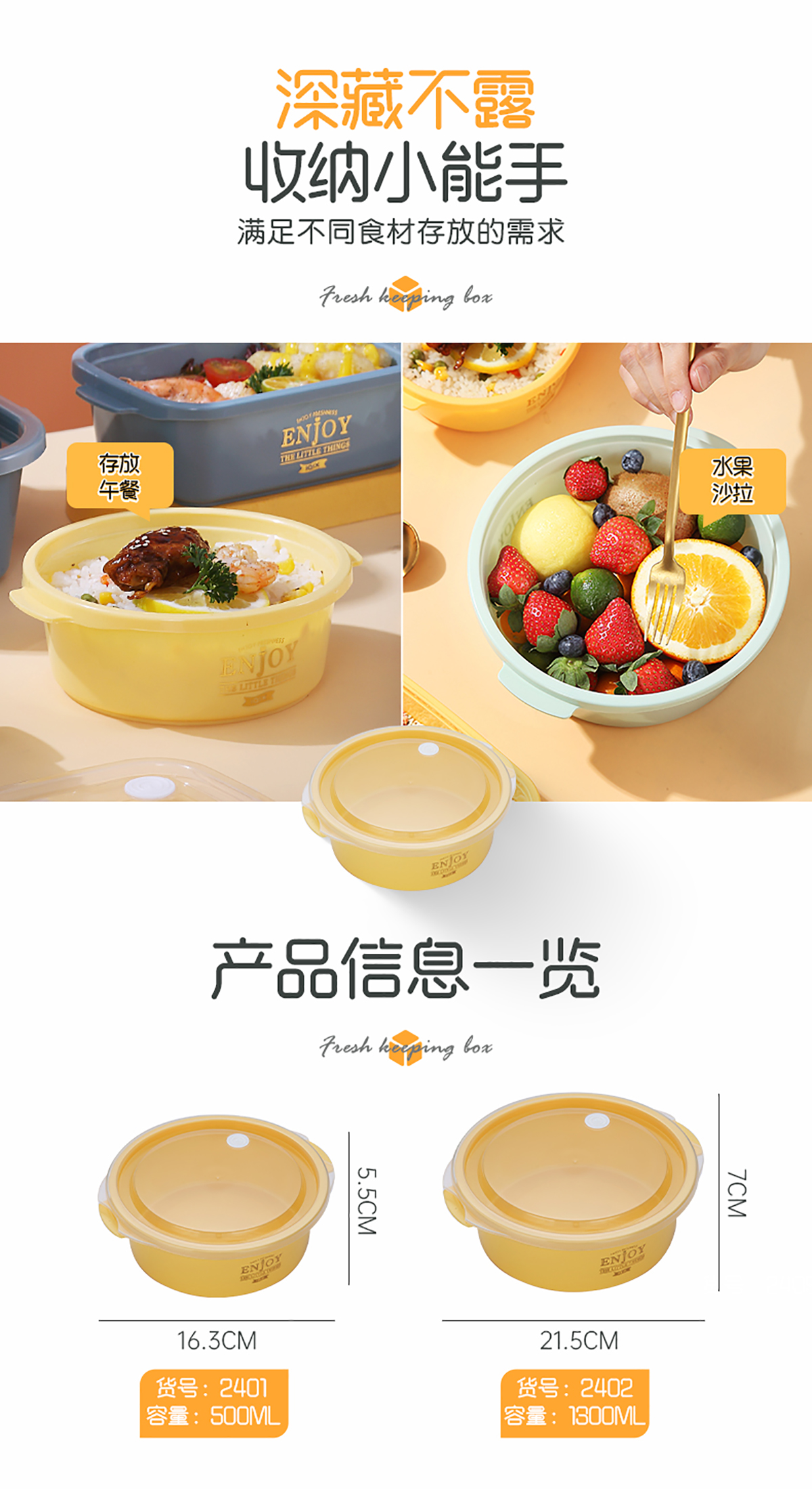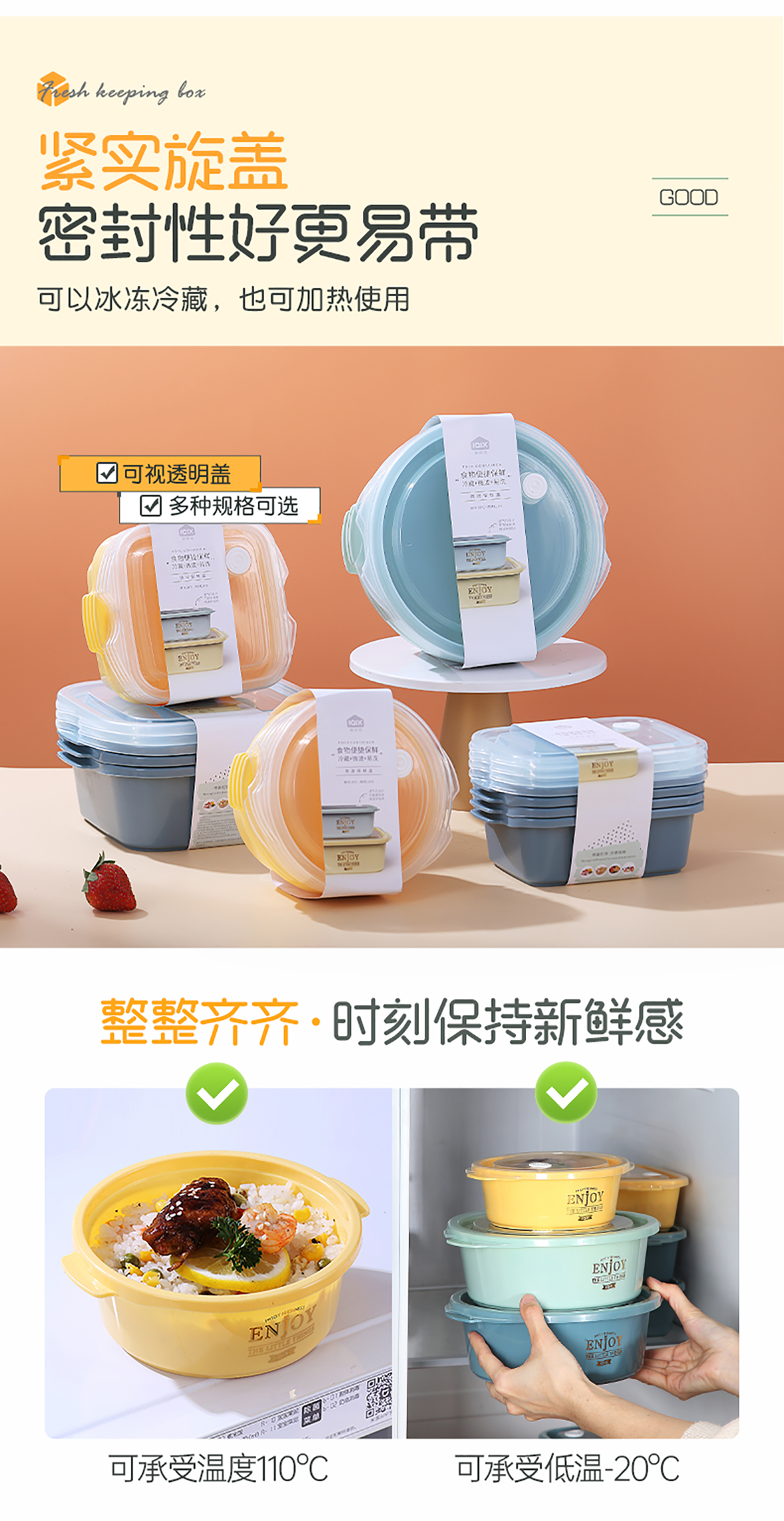 圓形輕便微波保鮮盒(小/大)(4個莊/3個莊)500ml/1300ml 2022新色