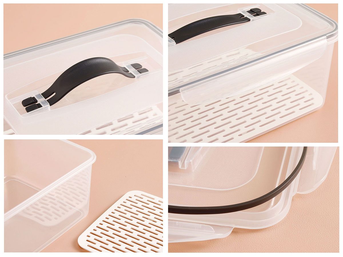 美時(shí)長(zhǎng)方形手提密封瀝水保鮮盒(4.5L/7.0L/10.5L/14.5L)