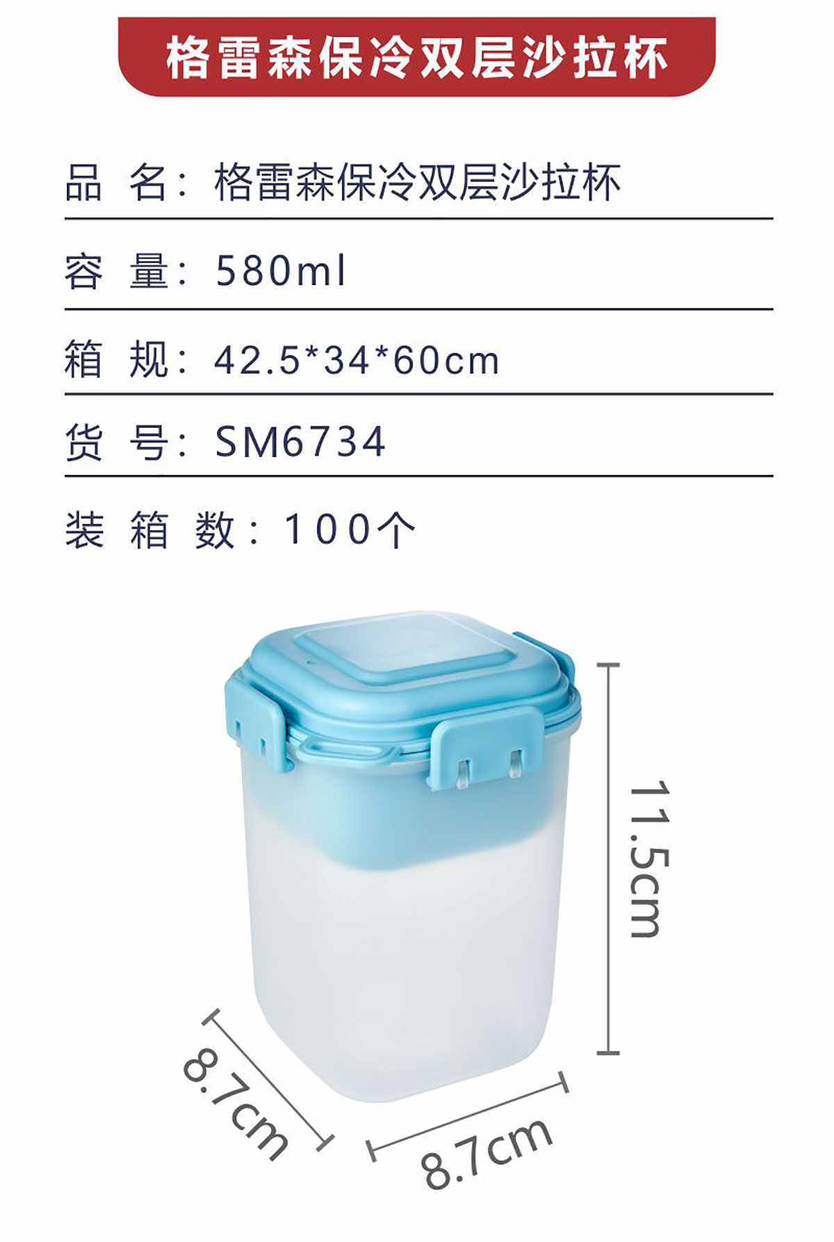 格雷森保冷雙層沙拉杯580ml