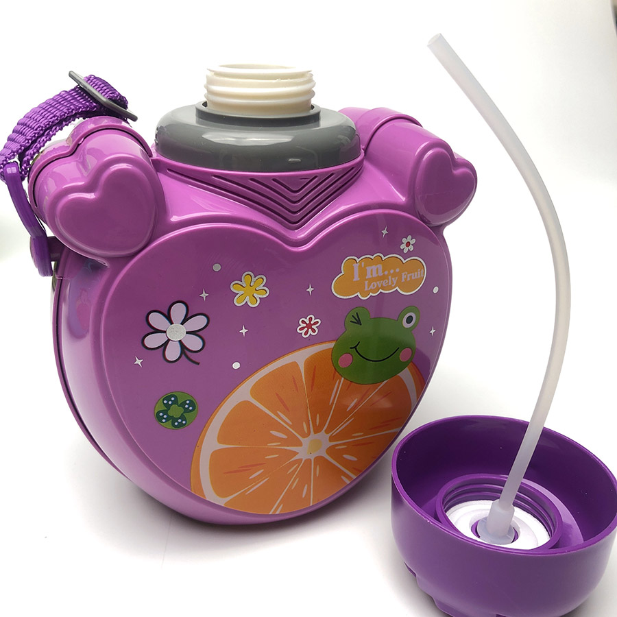 新心形雙層兒童水壺(吸管700ml)