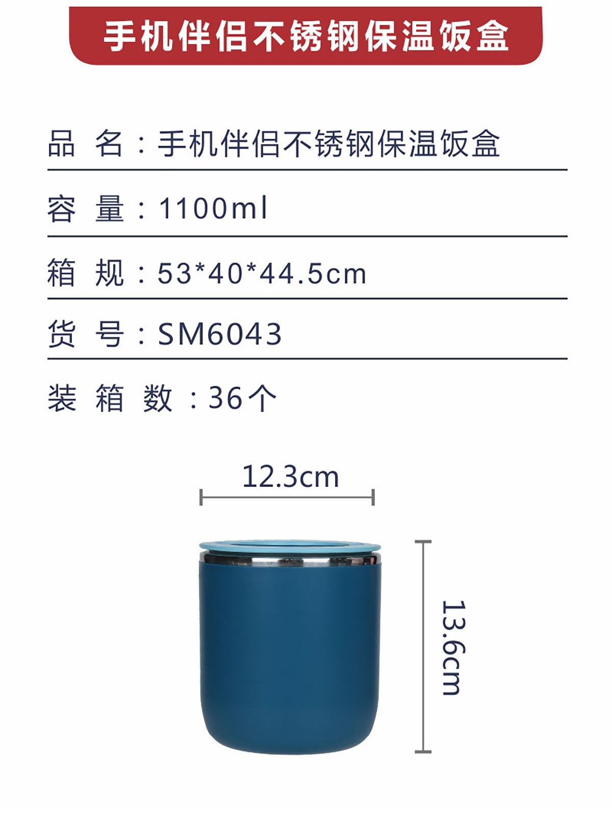 手機(jī)伴侶不銹鋼保溫飯盒1.1L