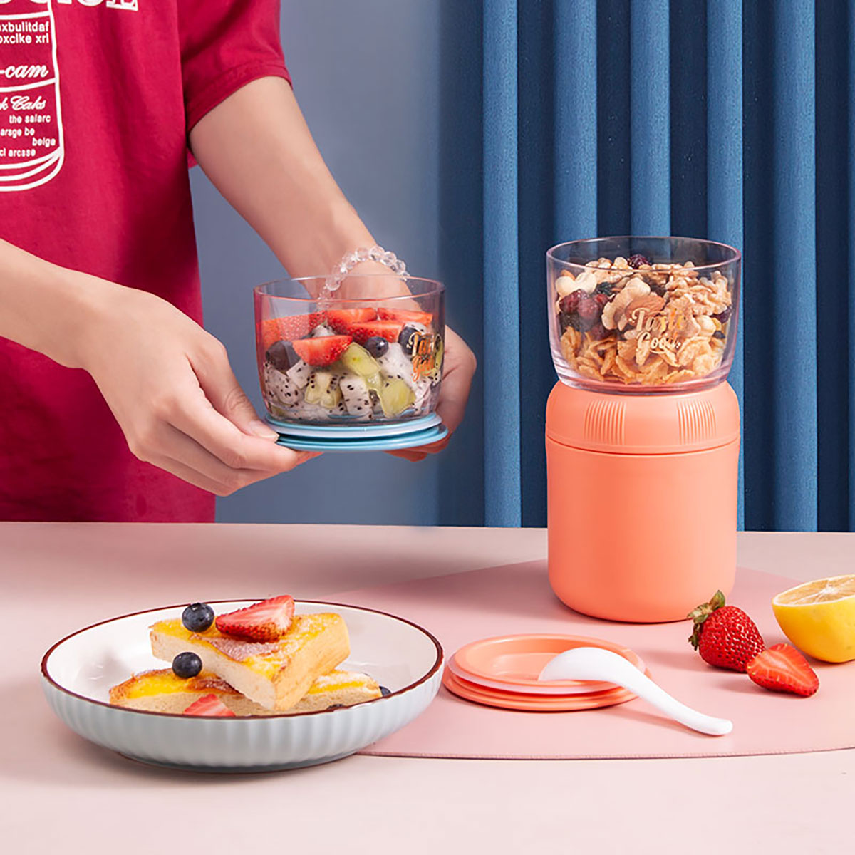 雙層密封湯杯/配袋(杯430ml+小碗330ml)