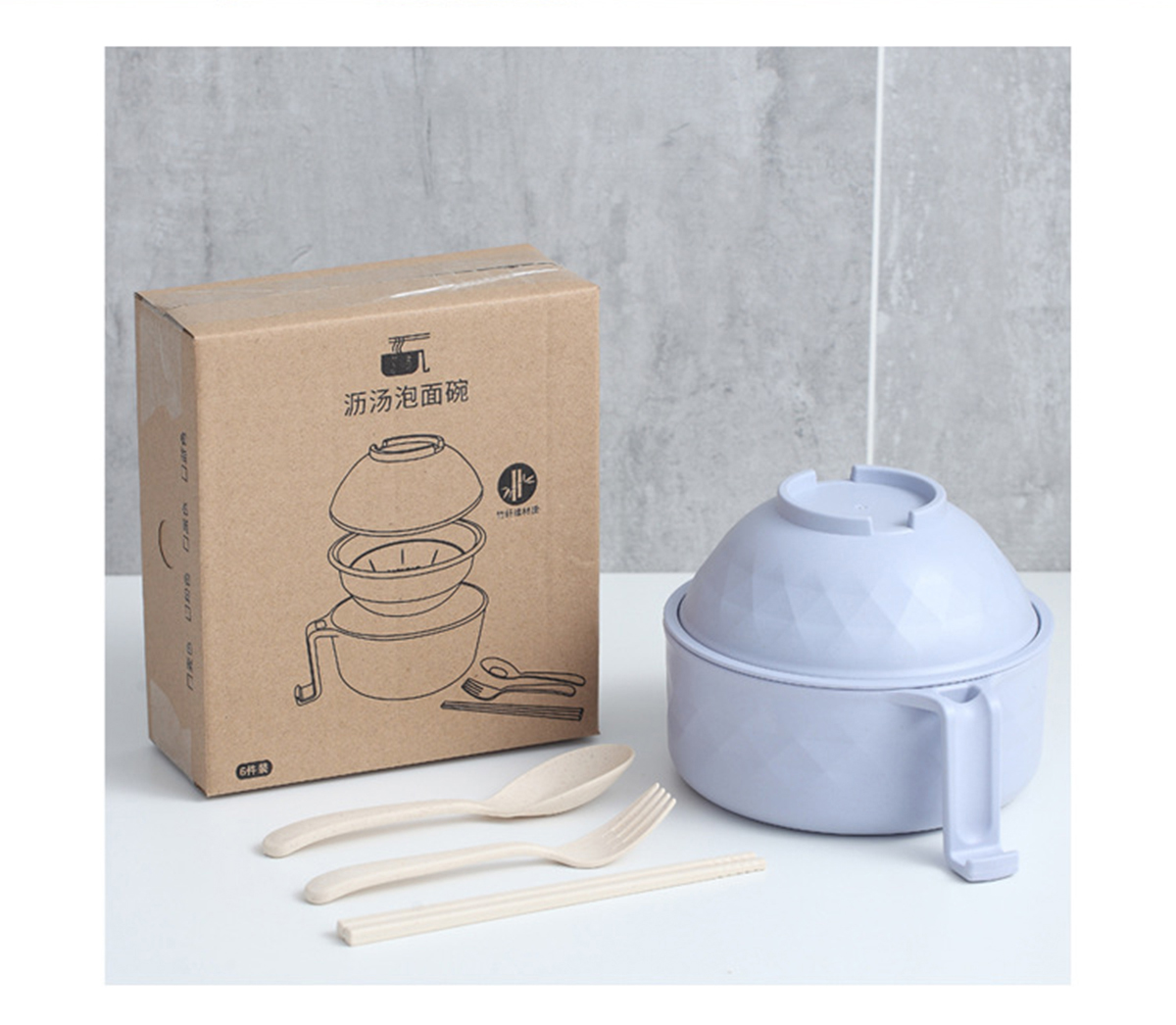 竹纖維瀝湯泡面碗(含餐具外包裝盒)1200ml