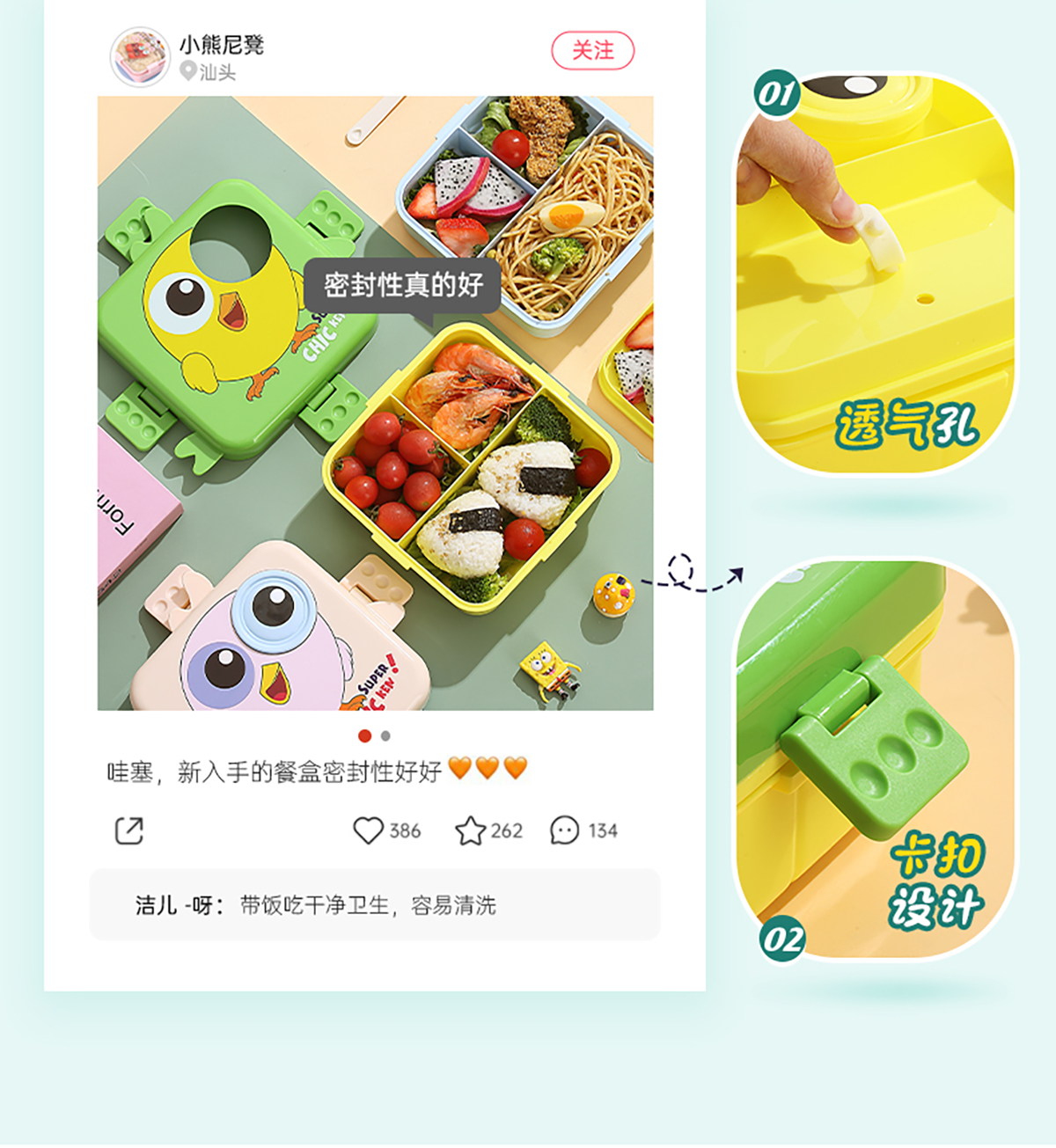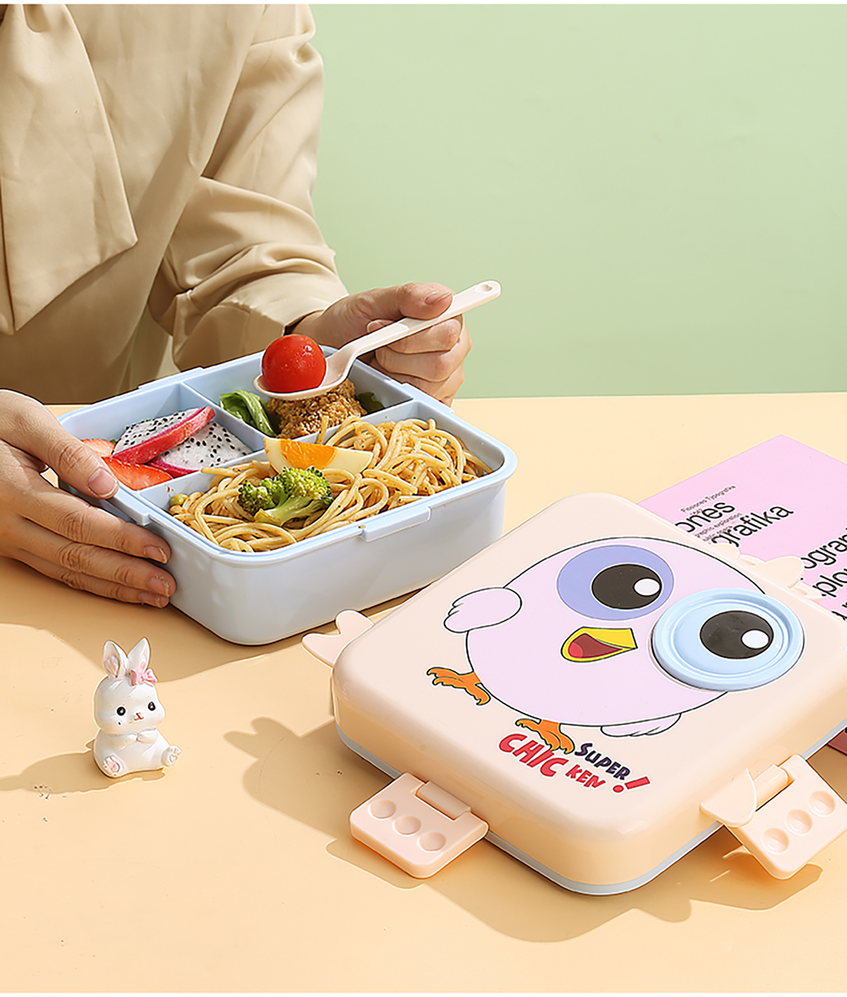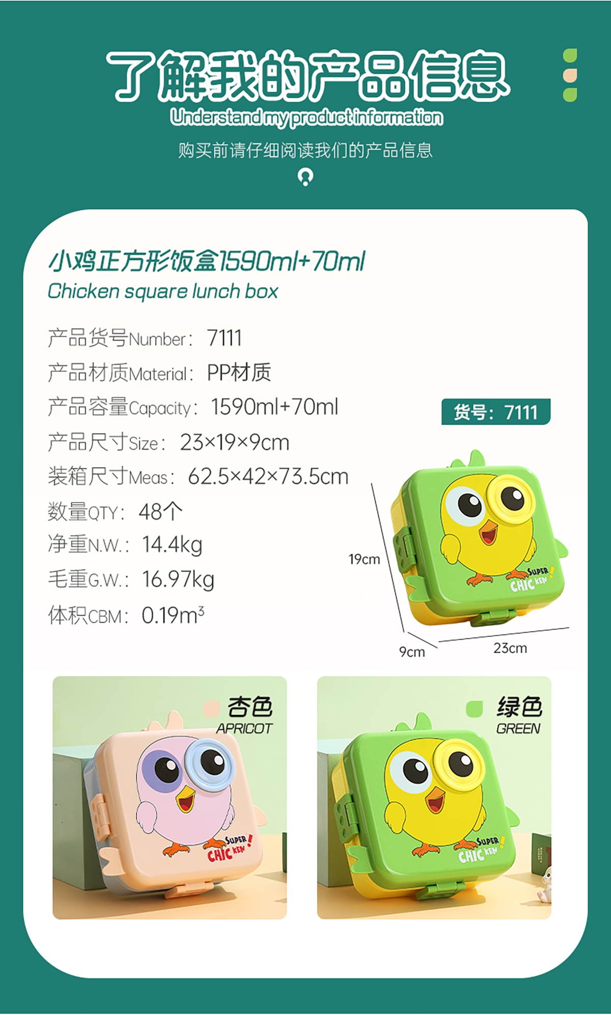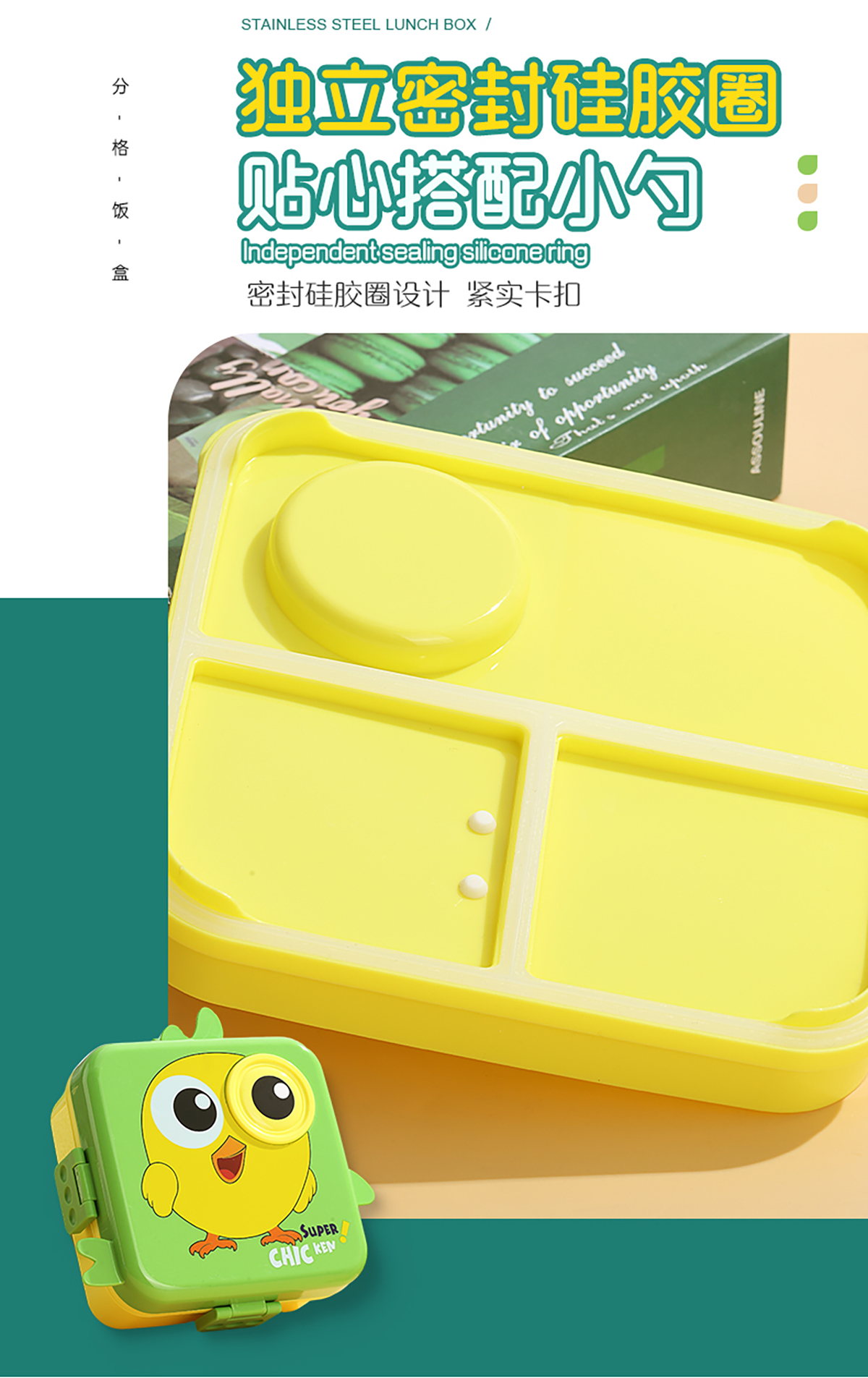小雞正方形飯盒(塑料)1590ml+70ml