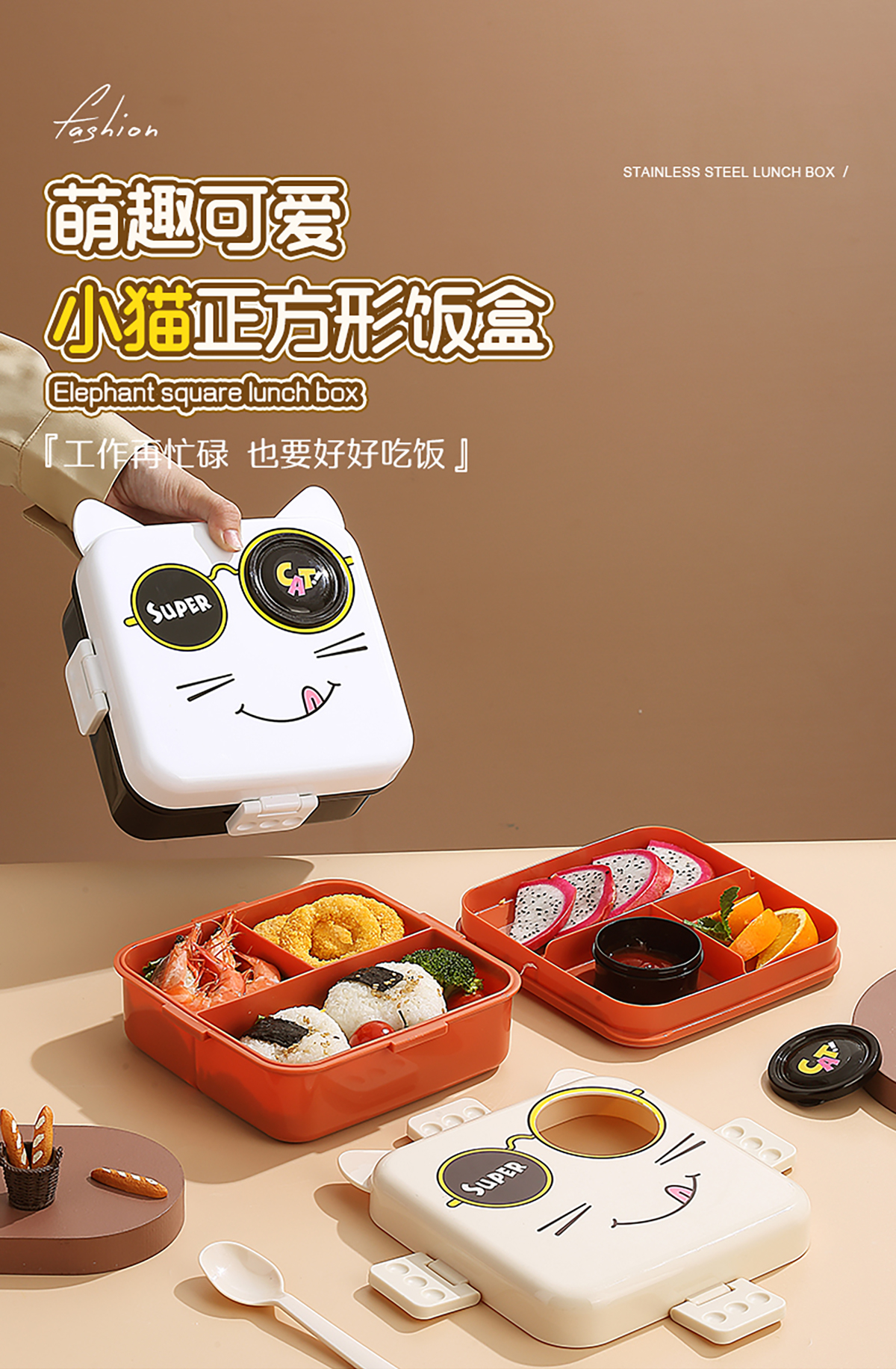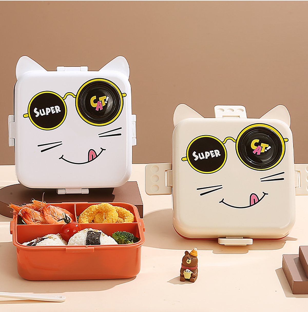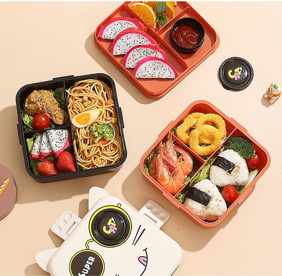 小貓正方形飯盒(塑料)1590ml+70ml