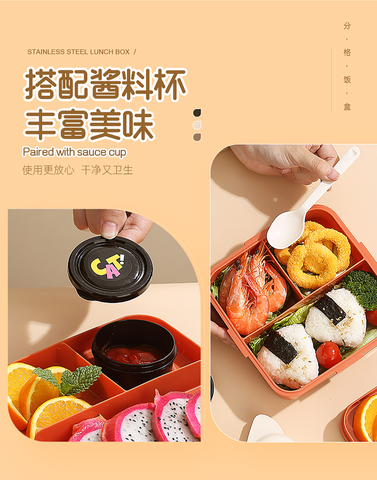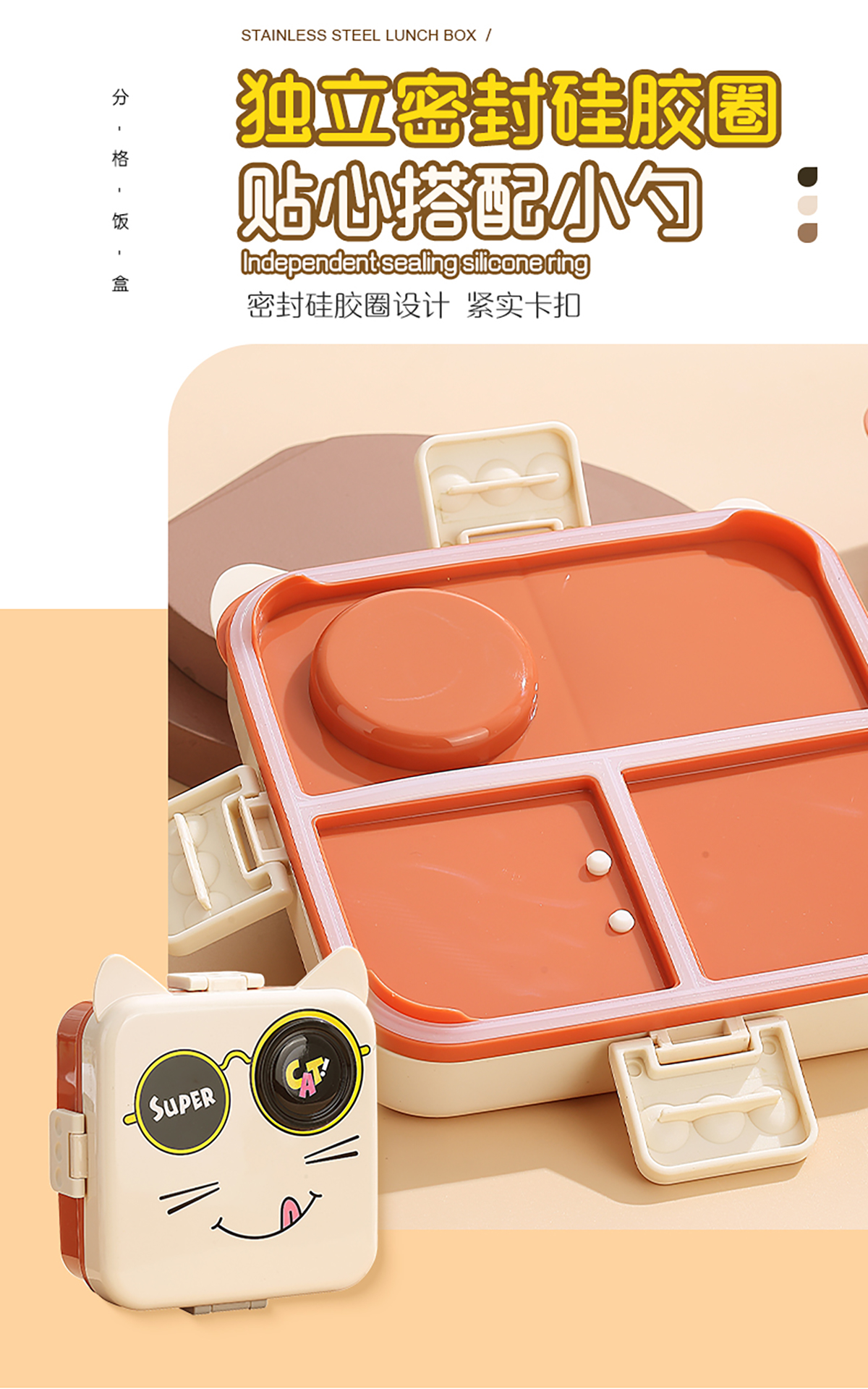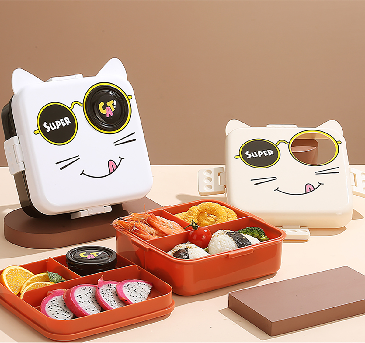 小貓正方形飯盒(塑料)1590ml+70ml