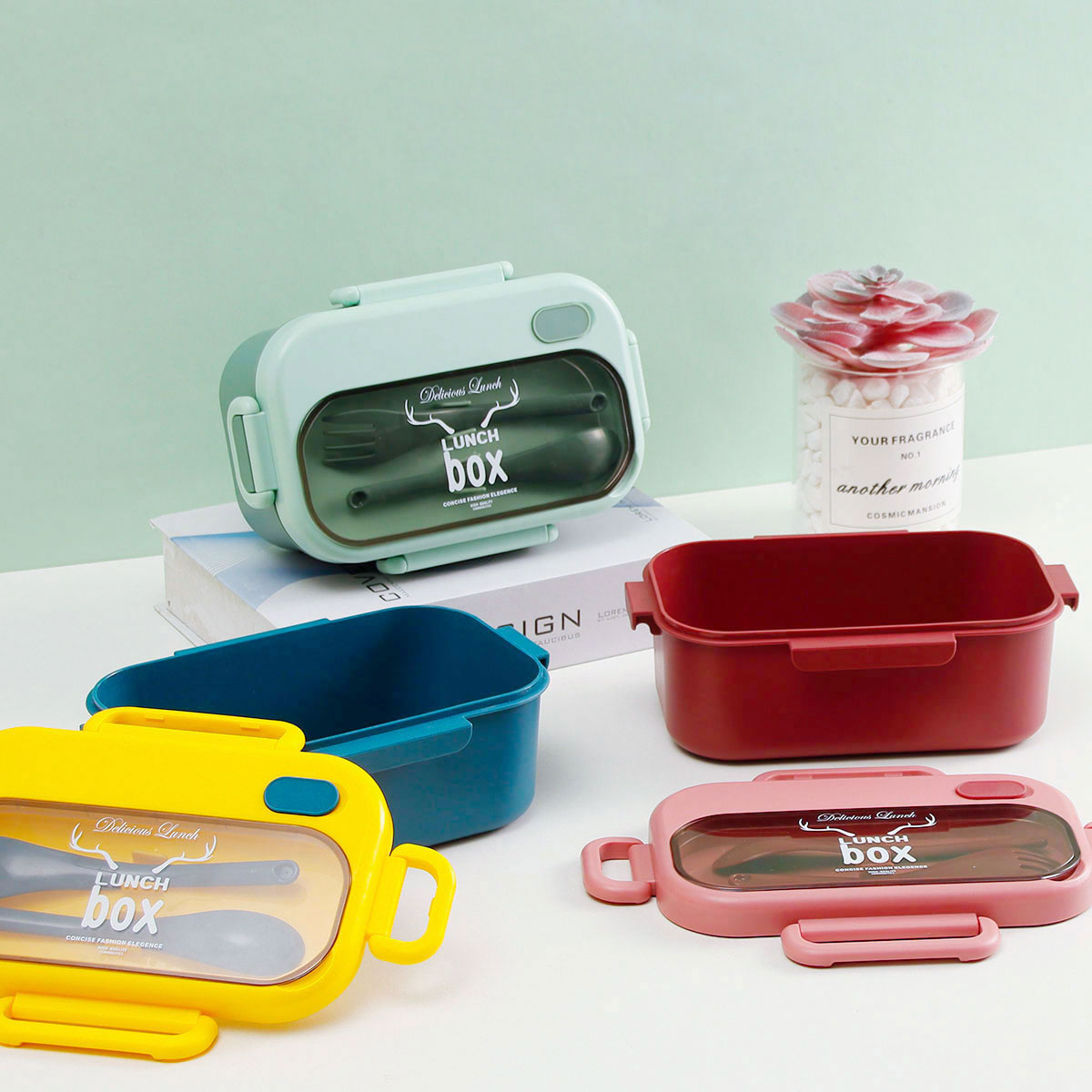 品悅長方單層密封飯盒(1000ml)+圓形/八角隨行杯(500ml)