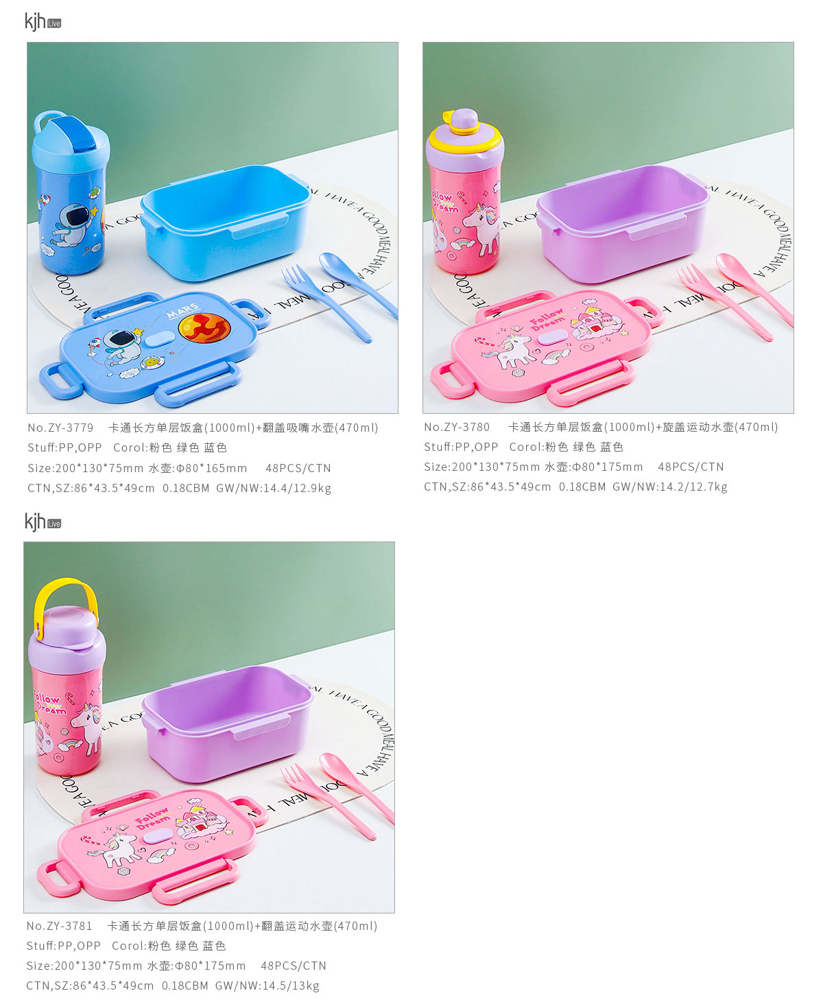 卡通長方單層/單層分格飯盒+翻蓋吸嘴/旋蓋運(yùn)動(dòng)/翻蓋運(yùn)動(dòng)水壺