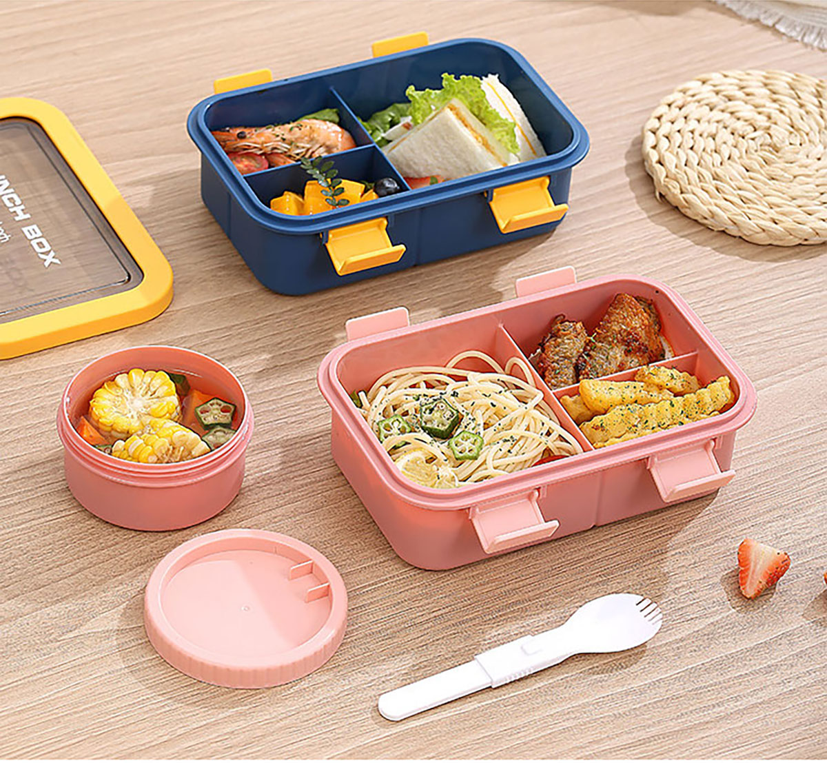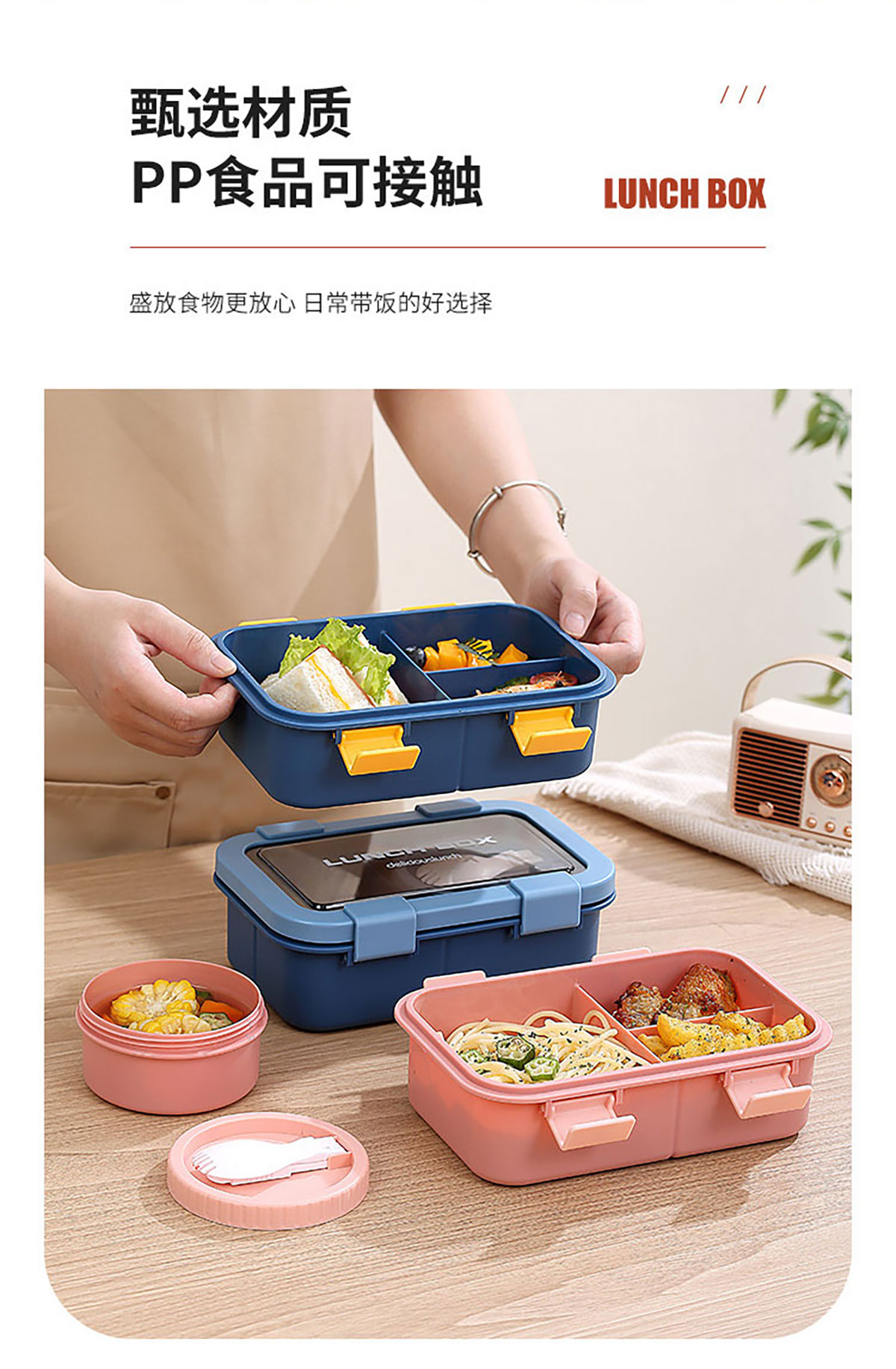 塑料三格分格飯盒1000ml/湯碗250ml