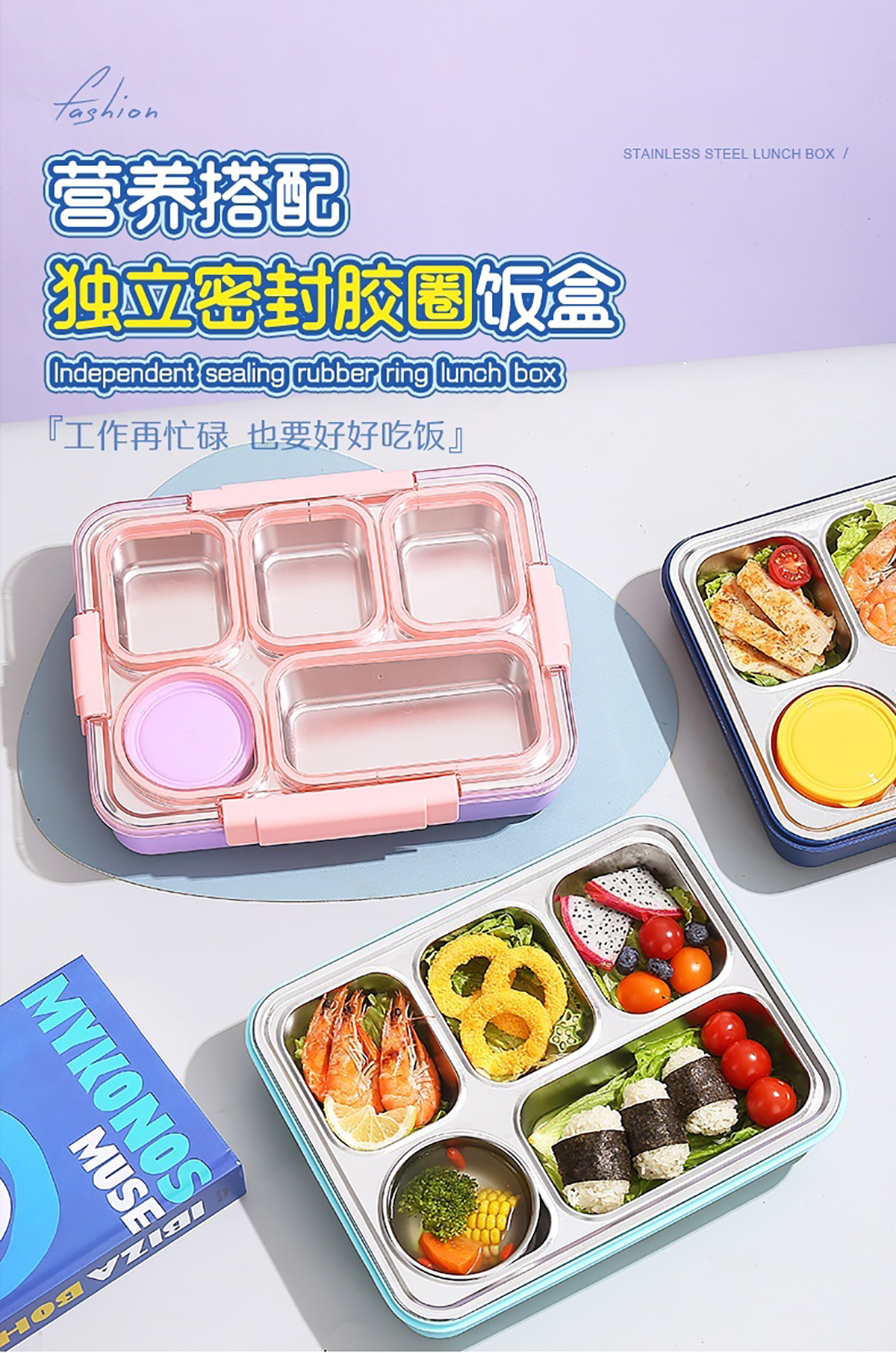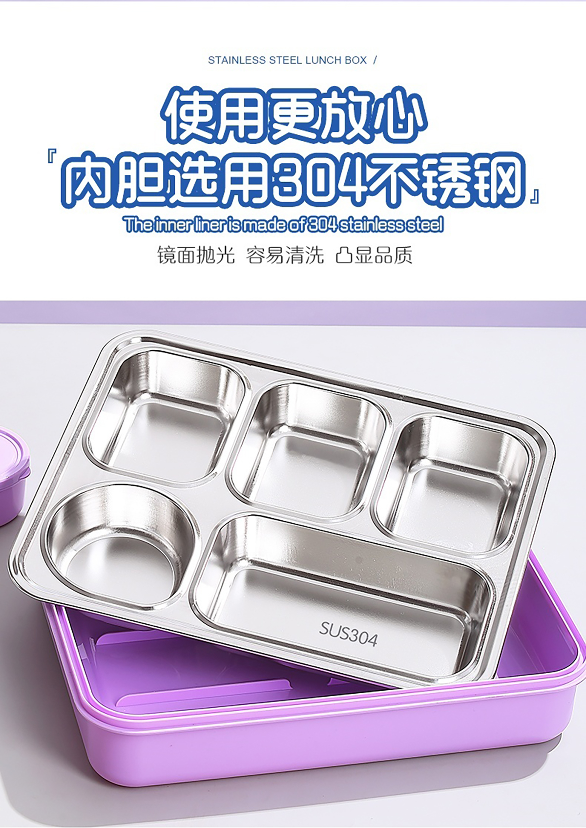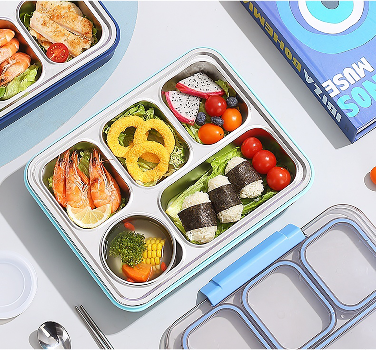 1400ml獨(dú)立密封不銹鋼餐盒(5格+不銹鋼碗150ml+不銹鋼勺筷)