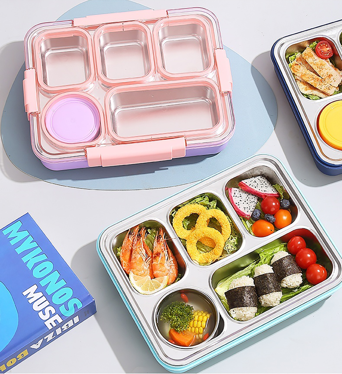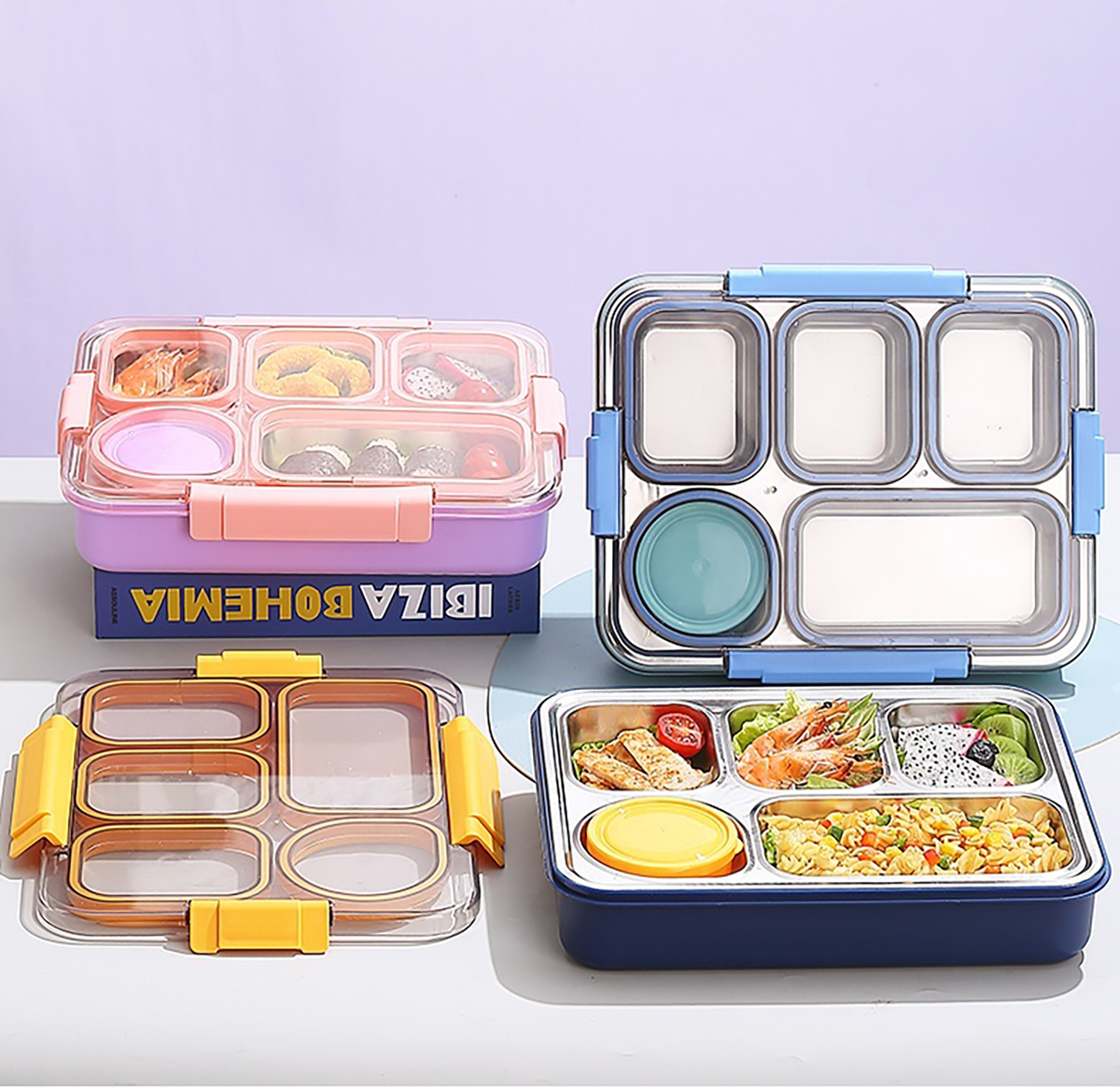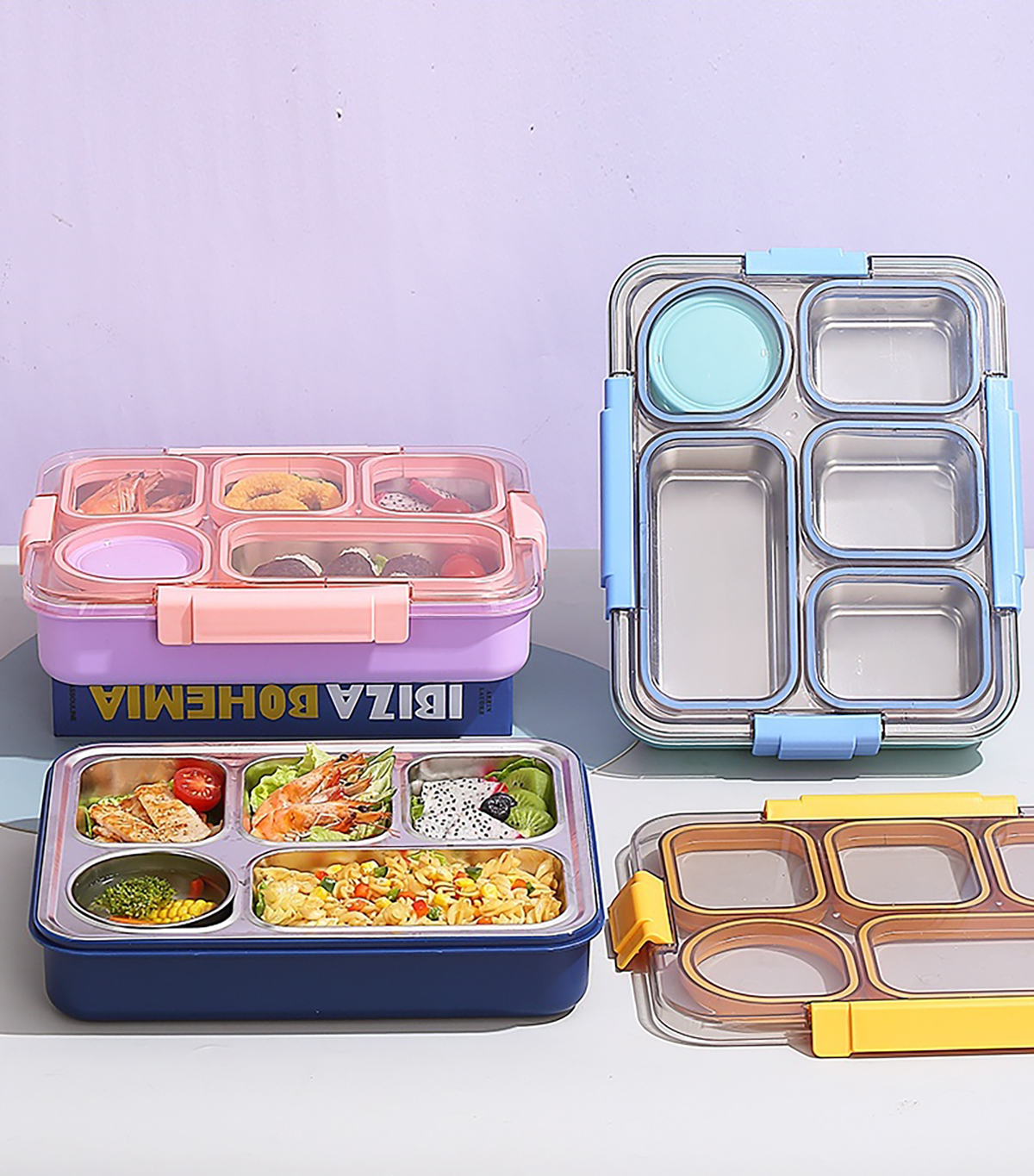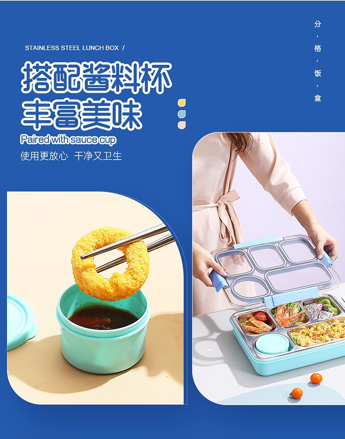 1400ml獨(dú)立密封不銹鋼餐盒(5格+不銹鋼碗150ml+不銹鋼勺筷)