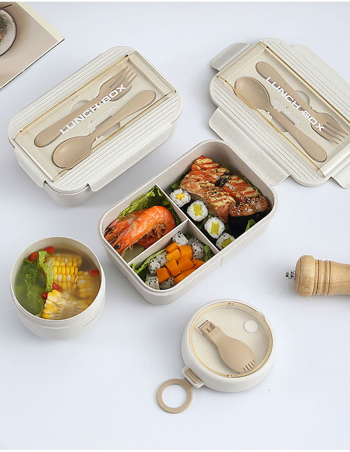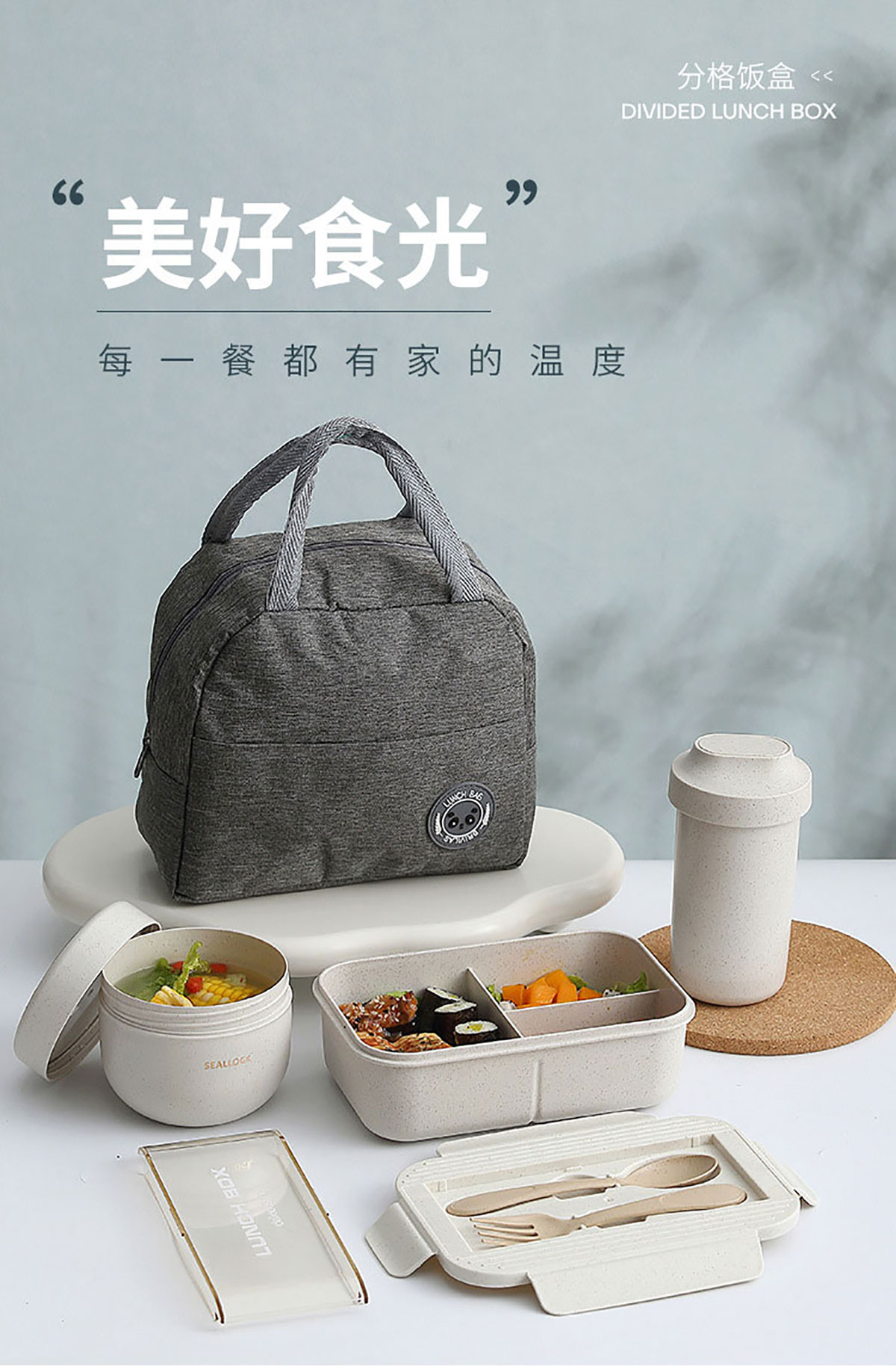 簡(jiǎn)麥便當(dāng)盒飯盒/套裝(飯盒+水杯/飯盒+水杯+灰色餐袋/飯盒+燕麥杯+灰色餐袋)