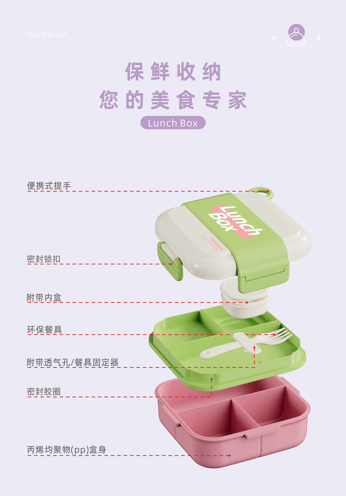 正方形分格餐盒