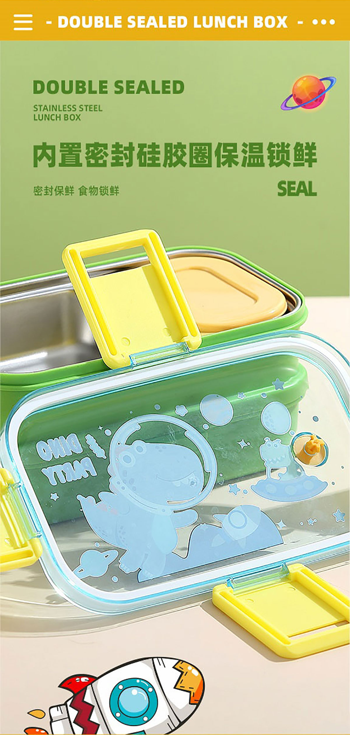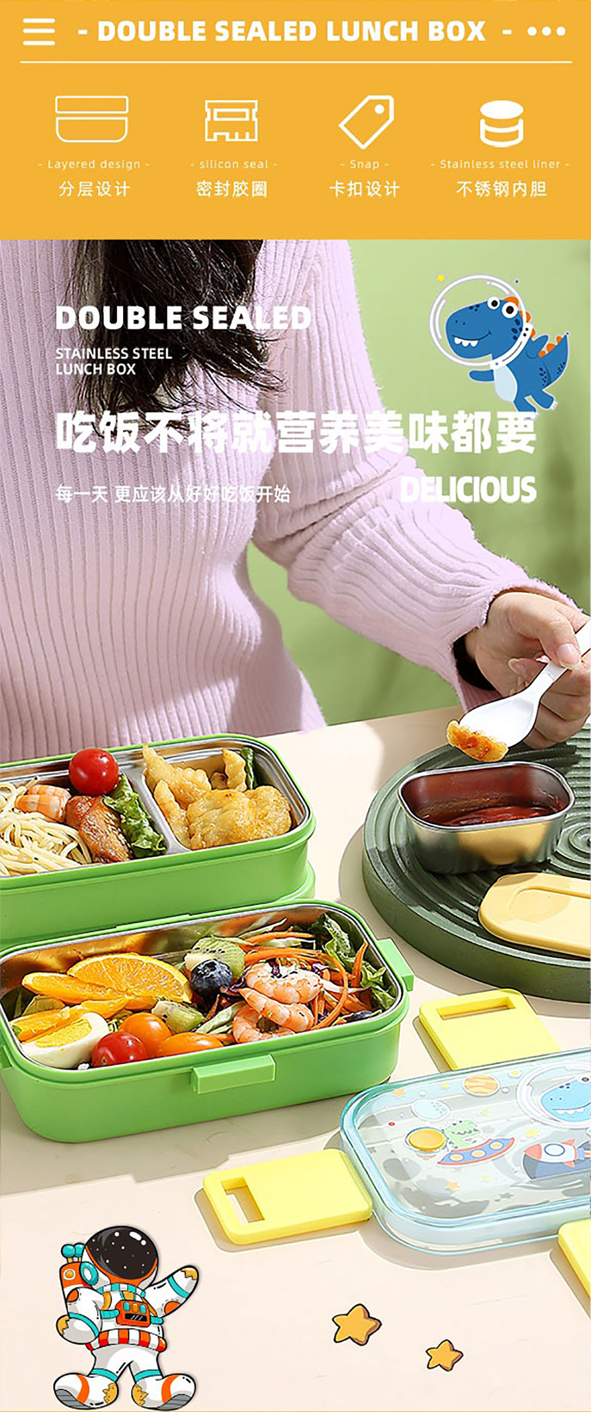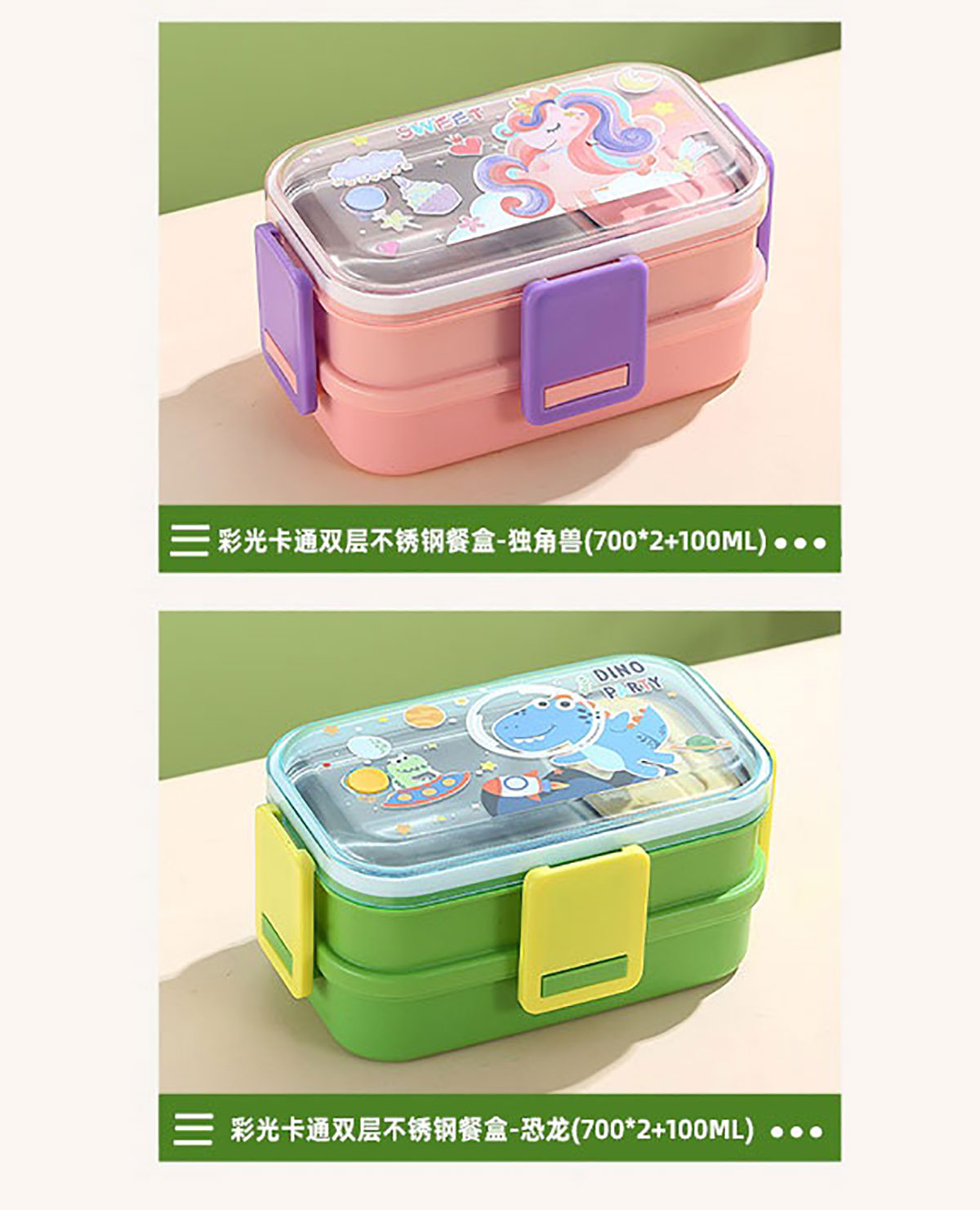 彩光卡通雙層不銹鋼餐盒(700mlx2+不銹鋼碗100ml)