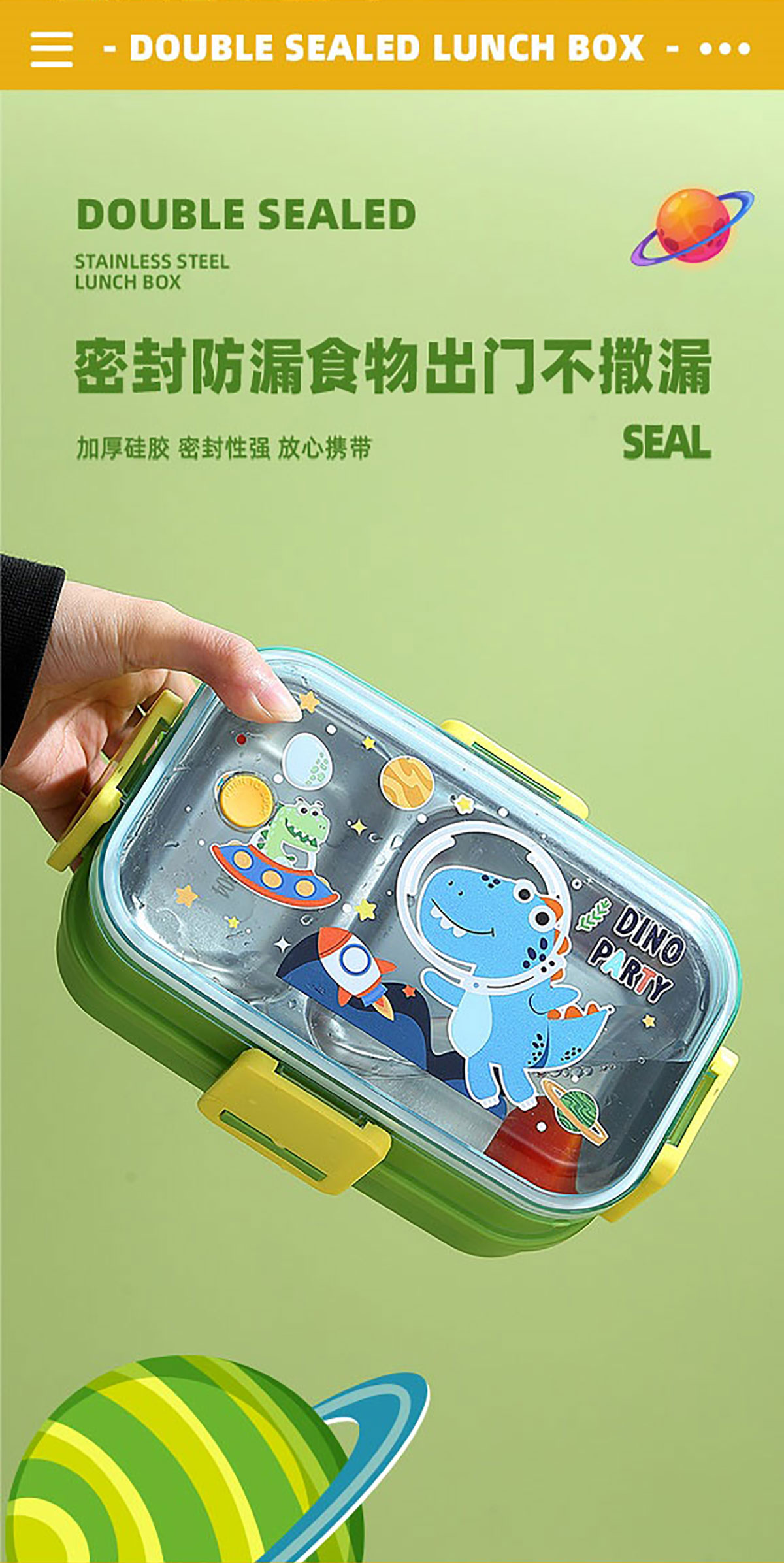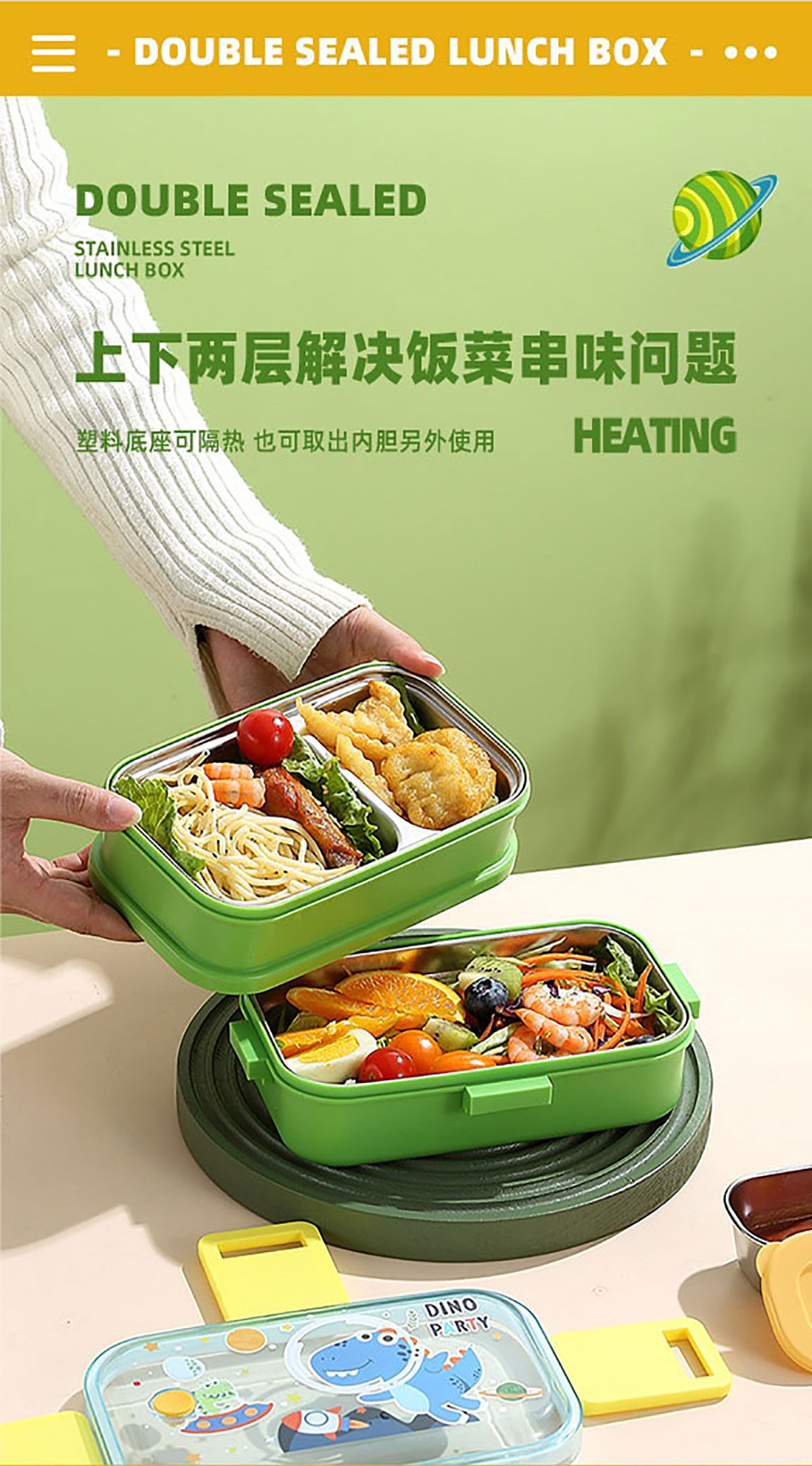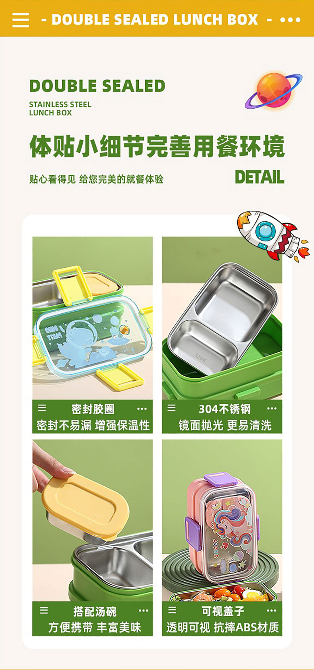 彩光卡通雙層不銹鋼餐盒(700mlx2+不銹鋼碗100ml)