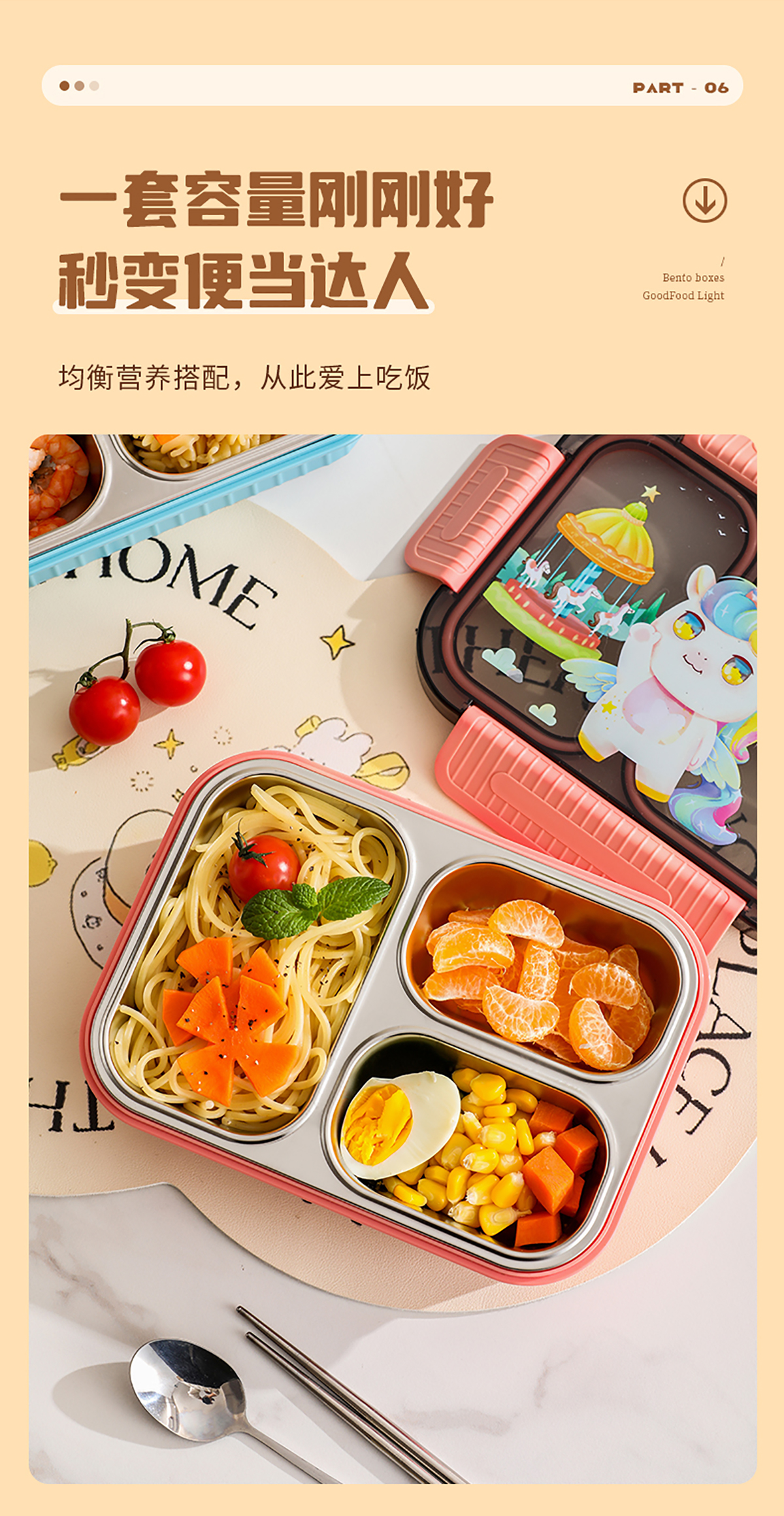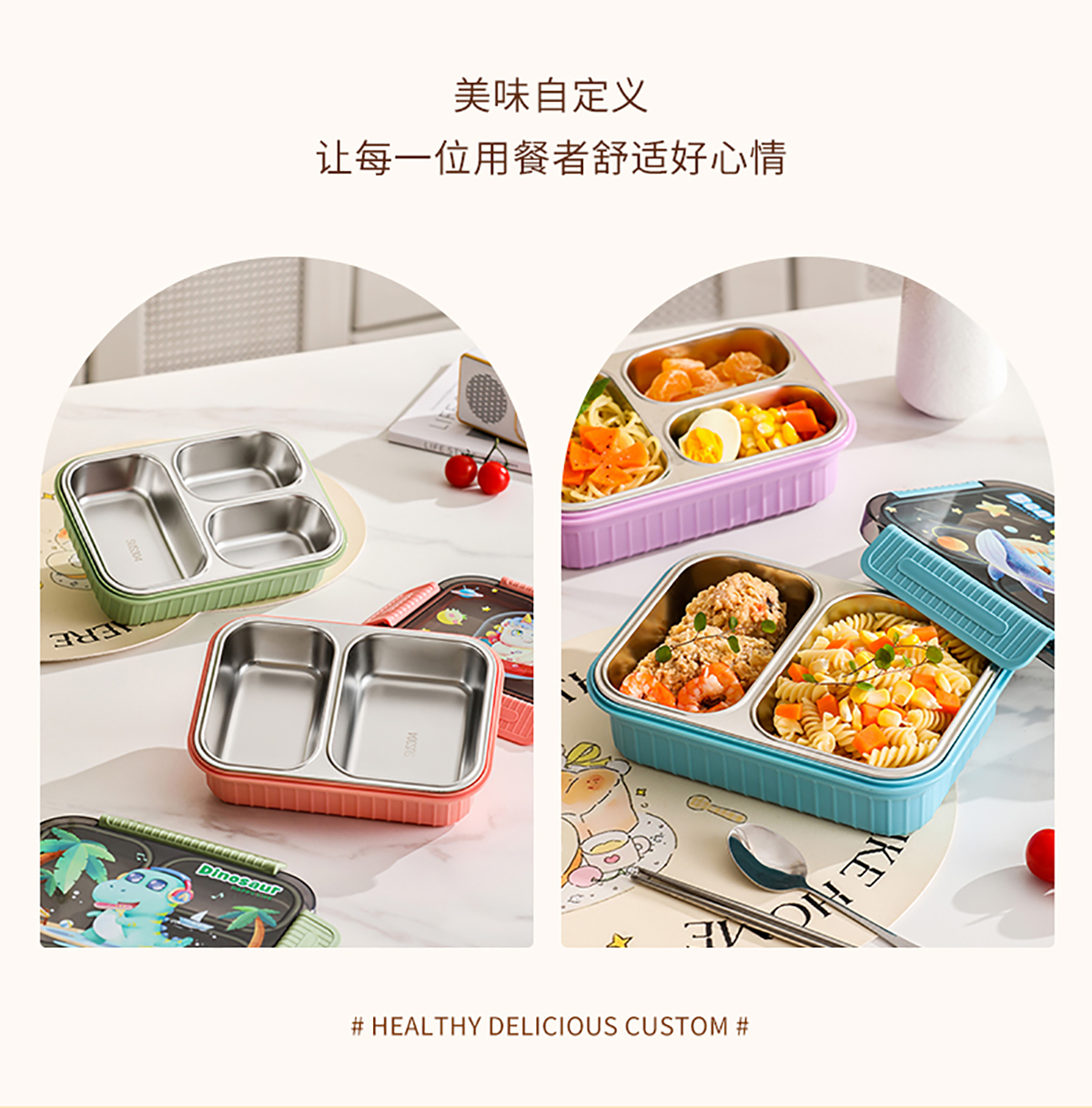 小號卡通密封不銹鋼餐盒(二格/三格)