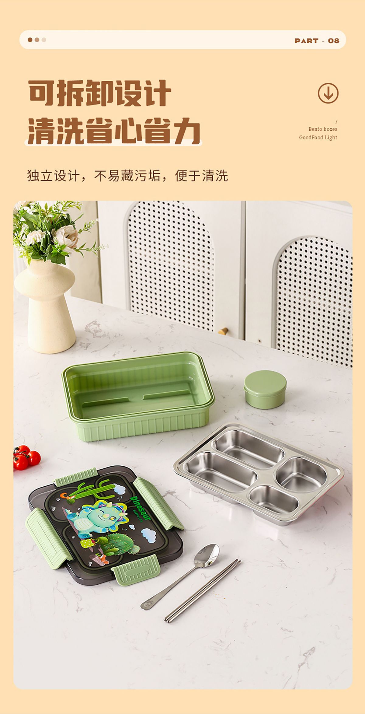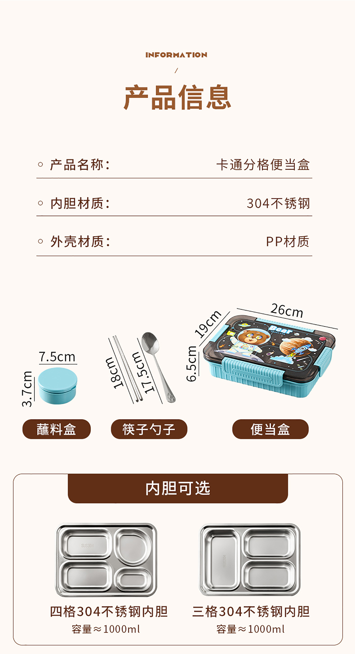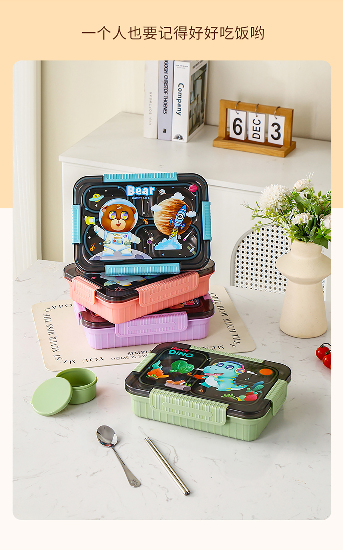 大號(hào)卡通密封不銹鋼餐盒(三格/四格+醬料盒)