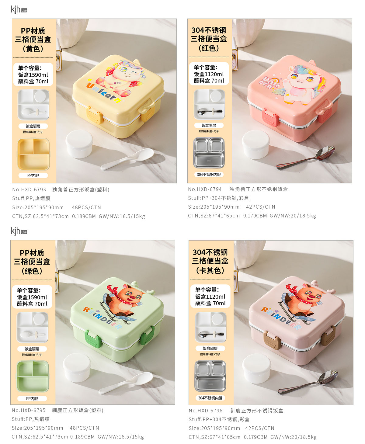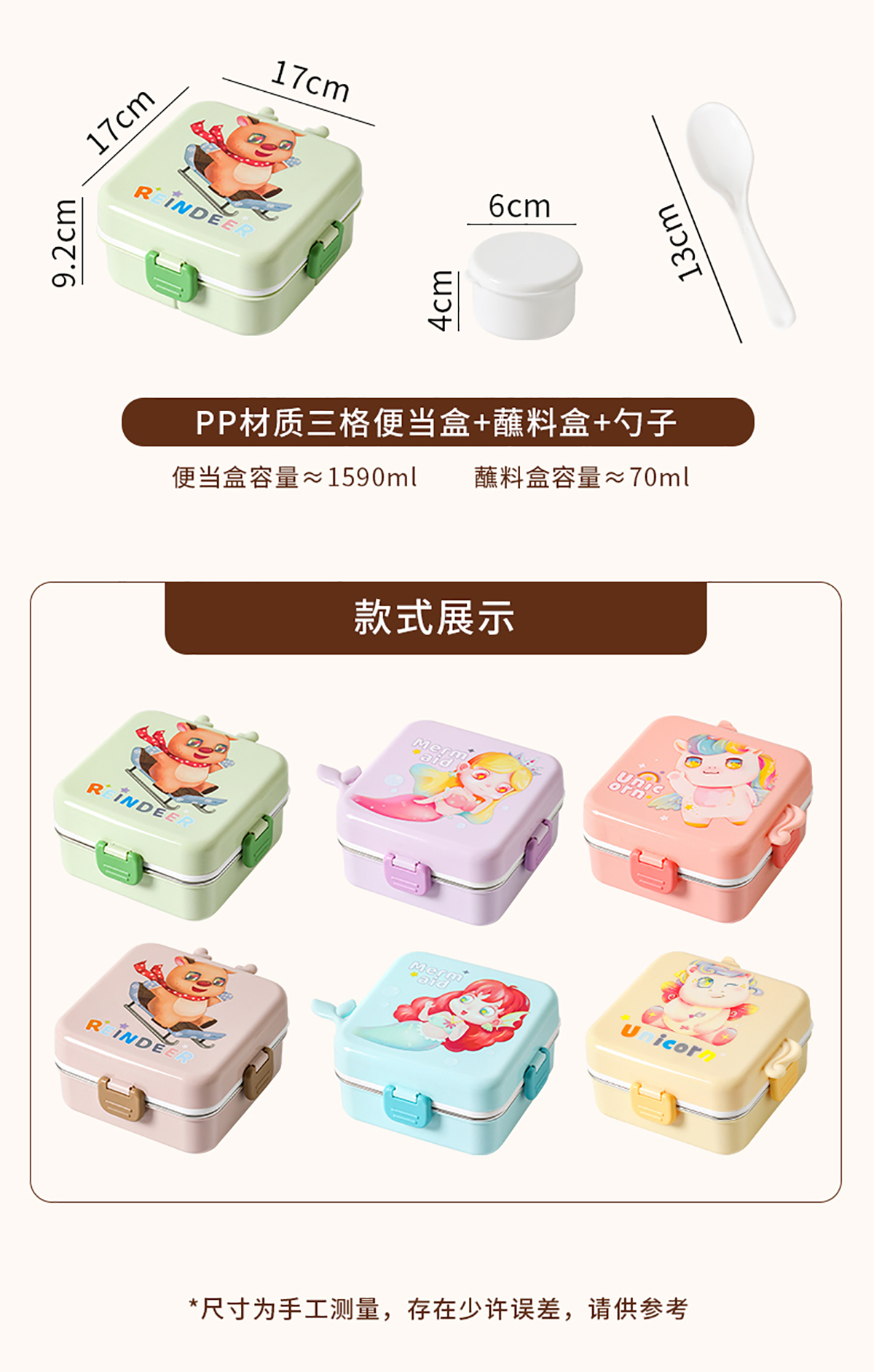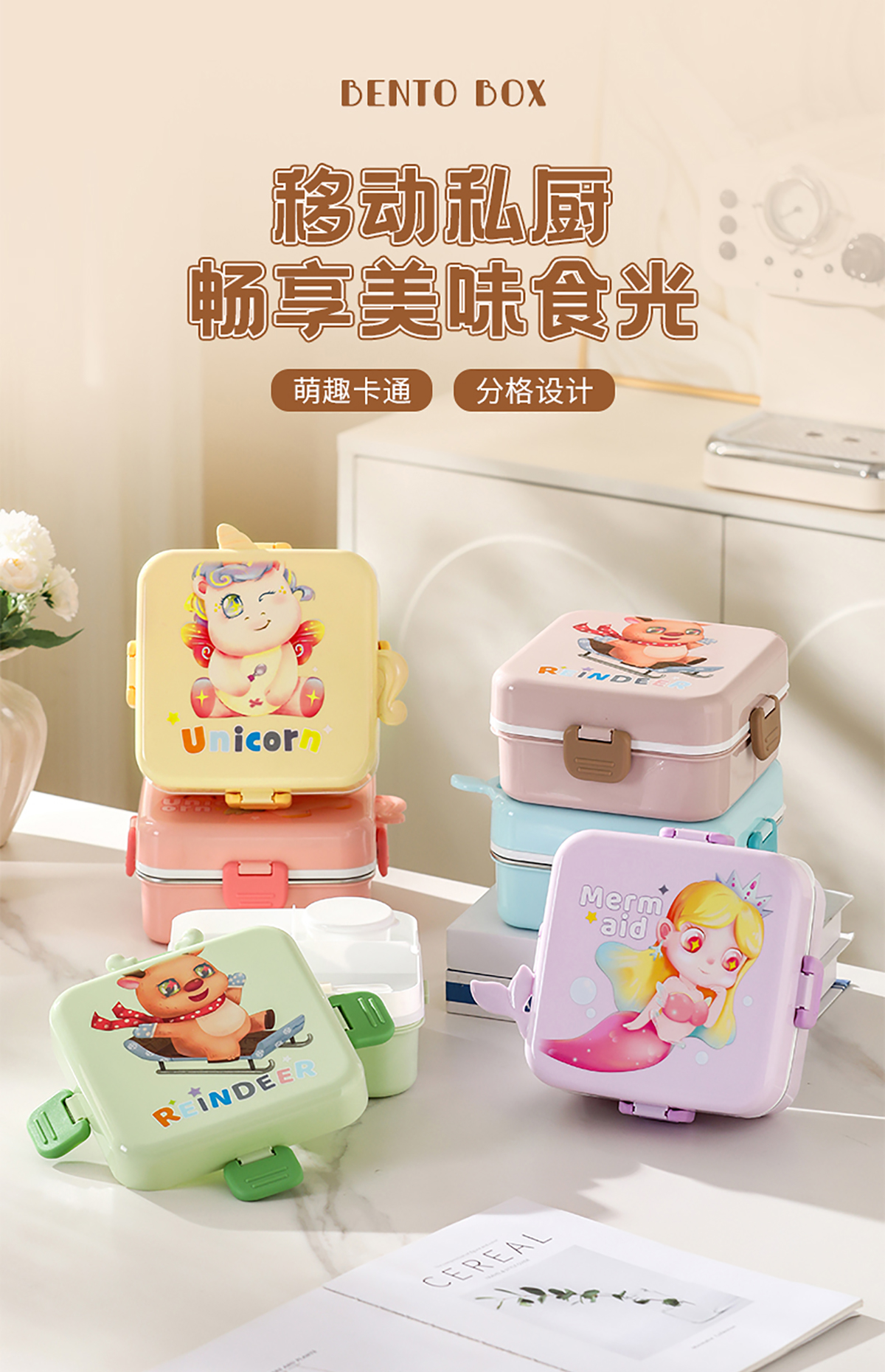 獨角獸/馴鹿/美人魚正方形飯盒(塑料/不銹鋼)