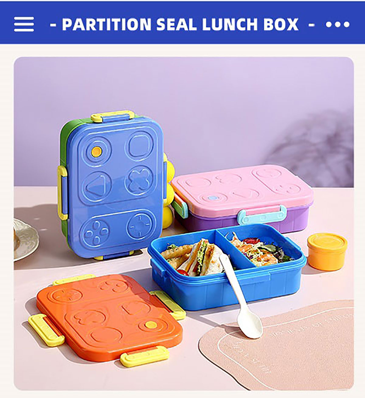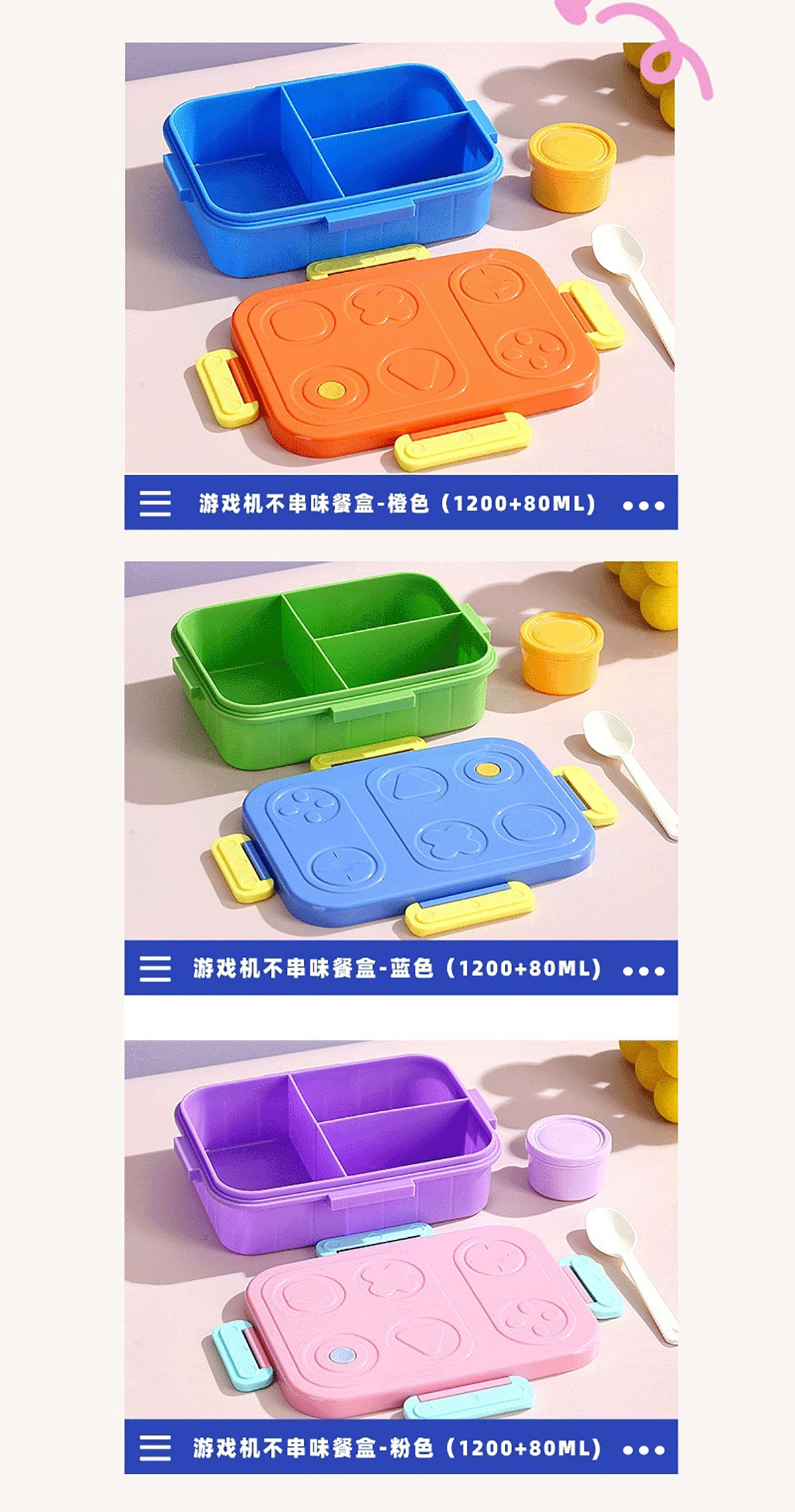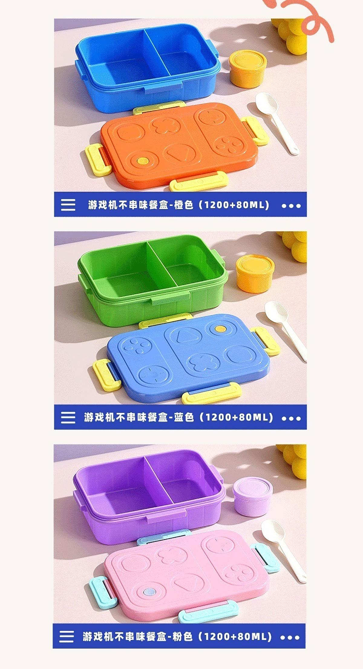 游戲機(jī)不串味餐盒(2格/3格1200ml+醬料杯80ml+PP勺)