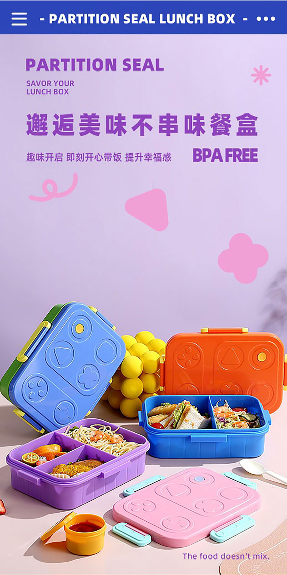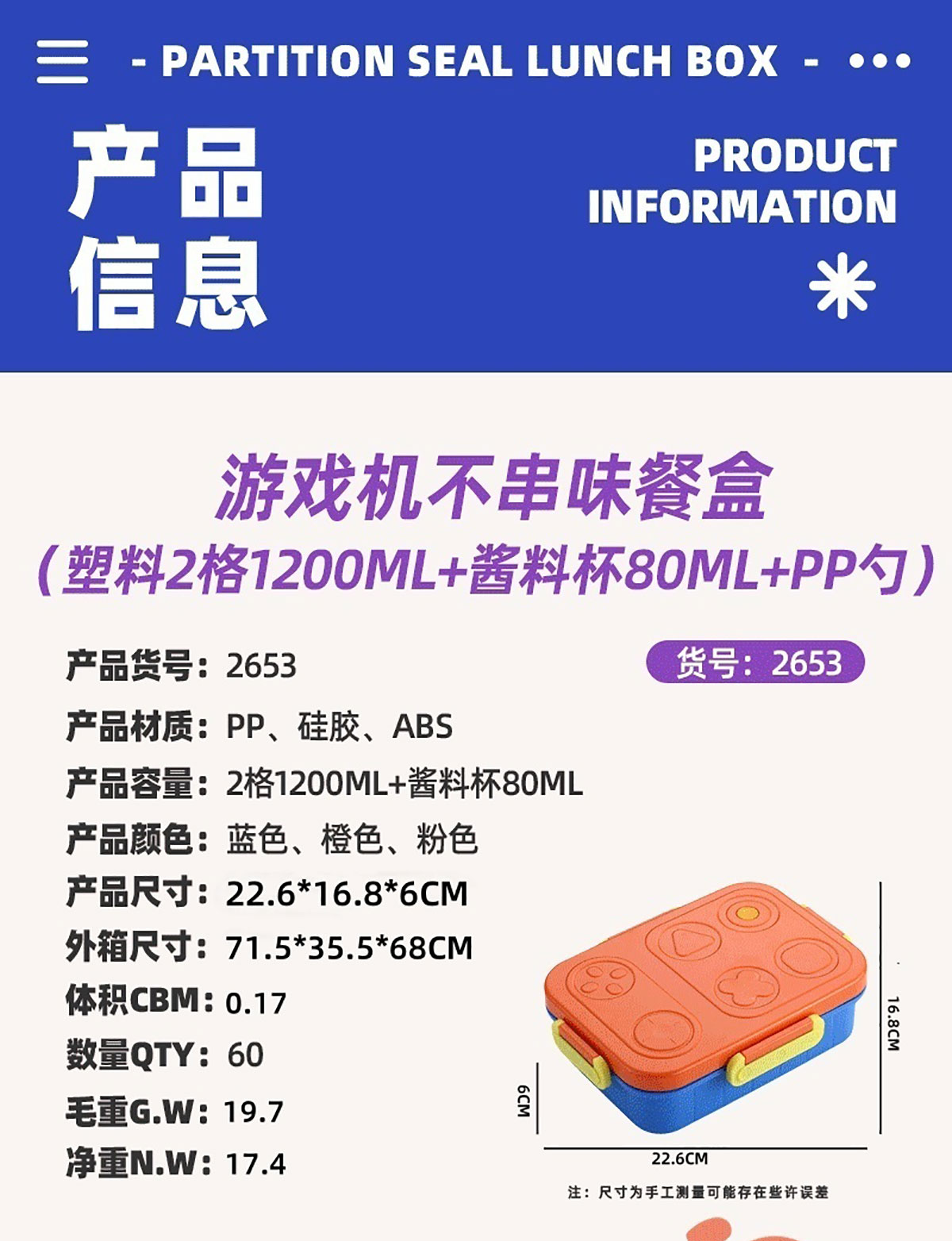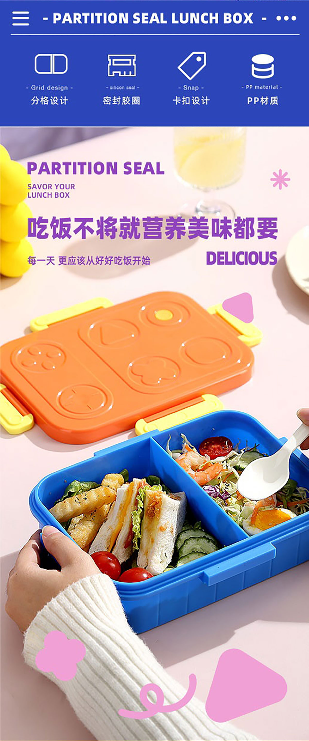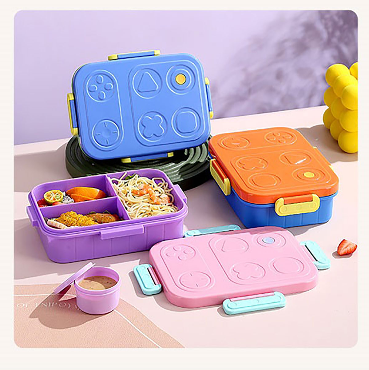 游戲機(jī)不串味餐盒(2格/3格1200ml+醬料杯80ml+PP勺)