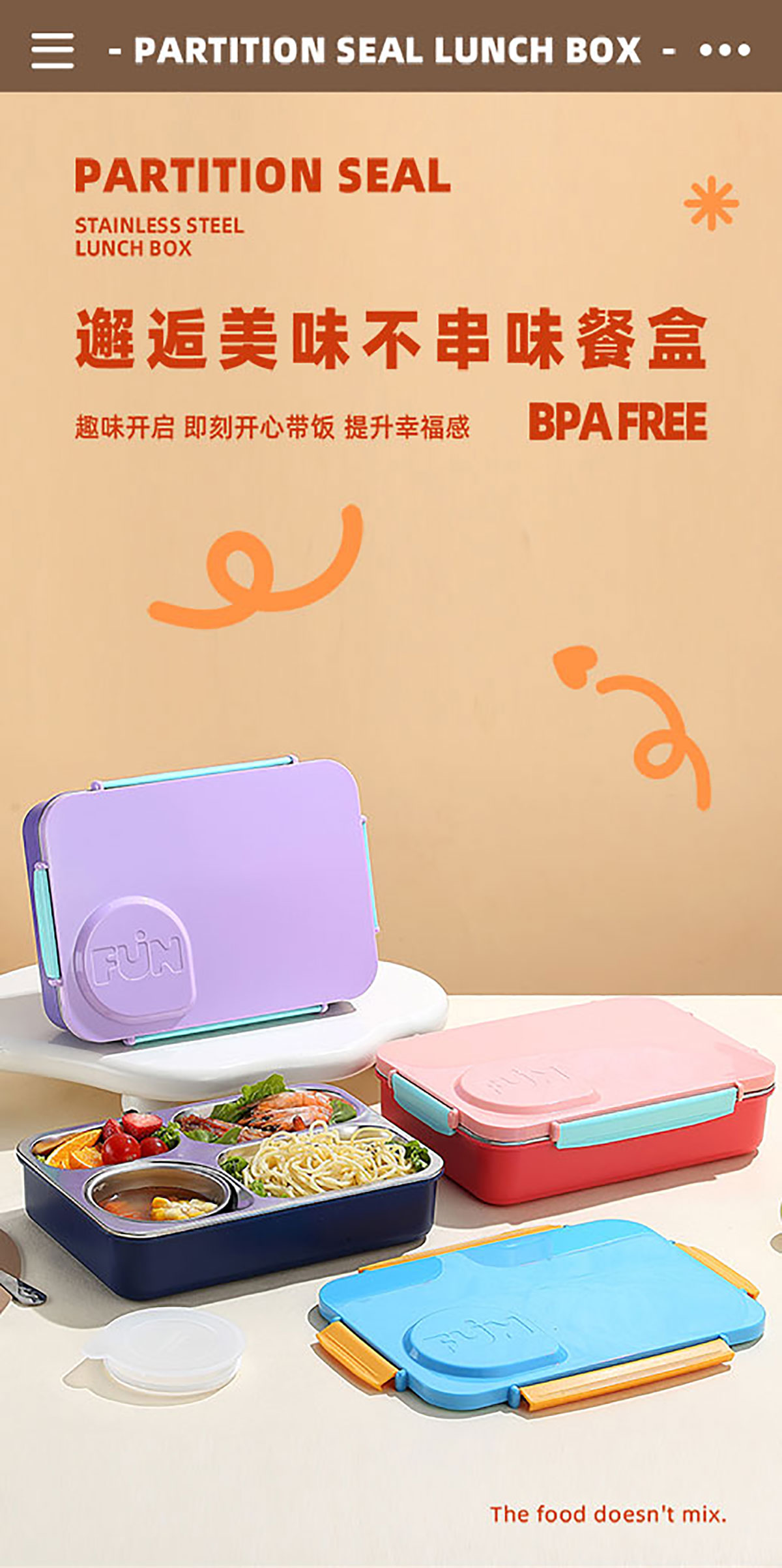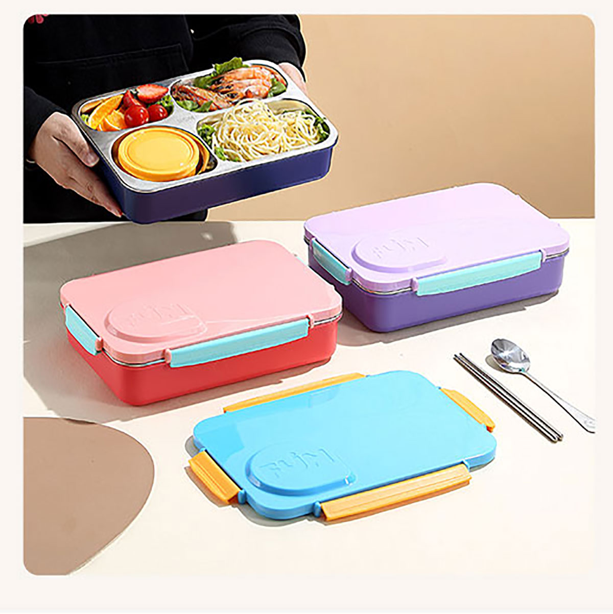FUN不串味餐盒(不銹鋼4格900ml+塑料碗/不銹鋼碗150ml+不銹鋼勺筷)