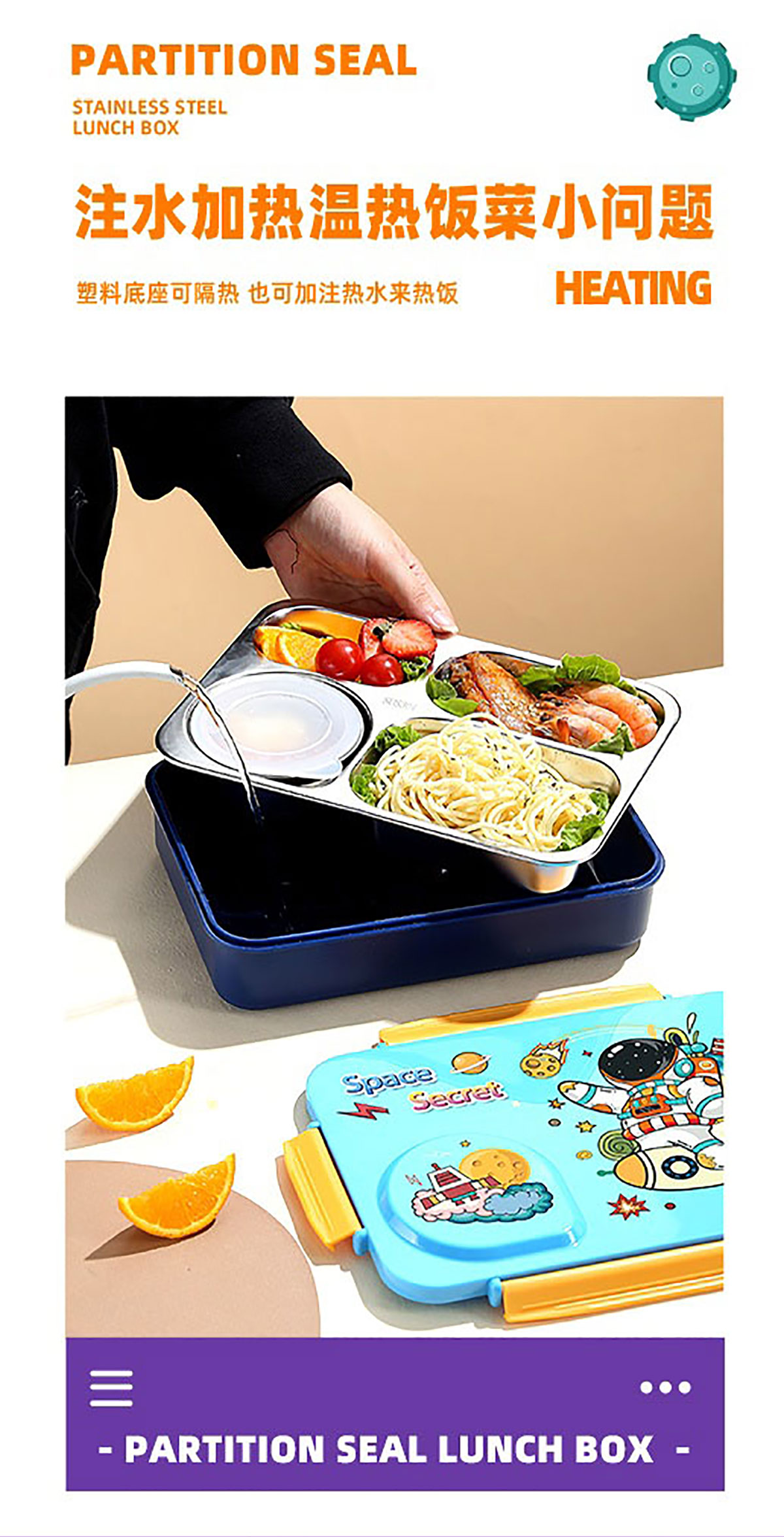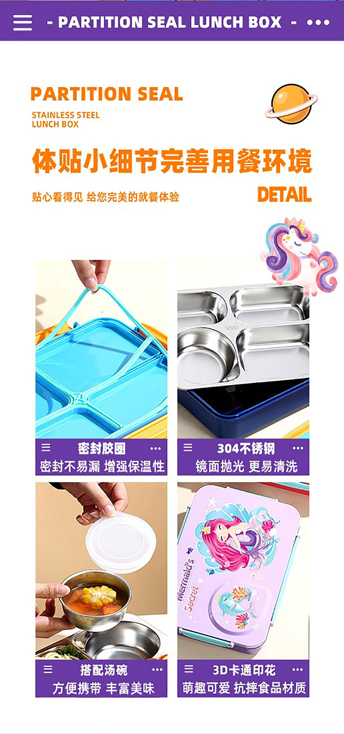 3D卡通不串味餐盒(不銹鋼4格900ml+塑料碗/不銹鋼碗150ml+不銹鋼勺筷)