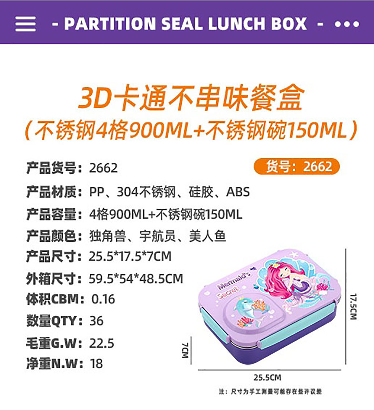 Size: AQX-2661:255*175*70mm+塑料碗150ml