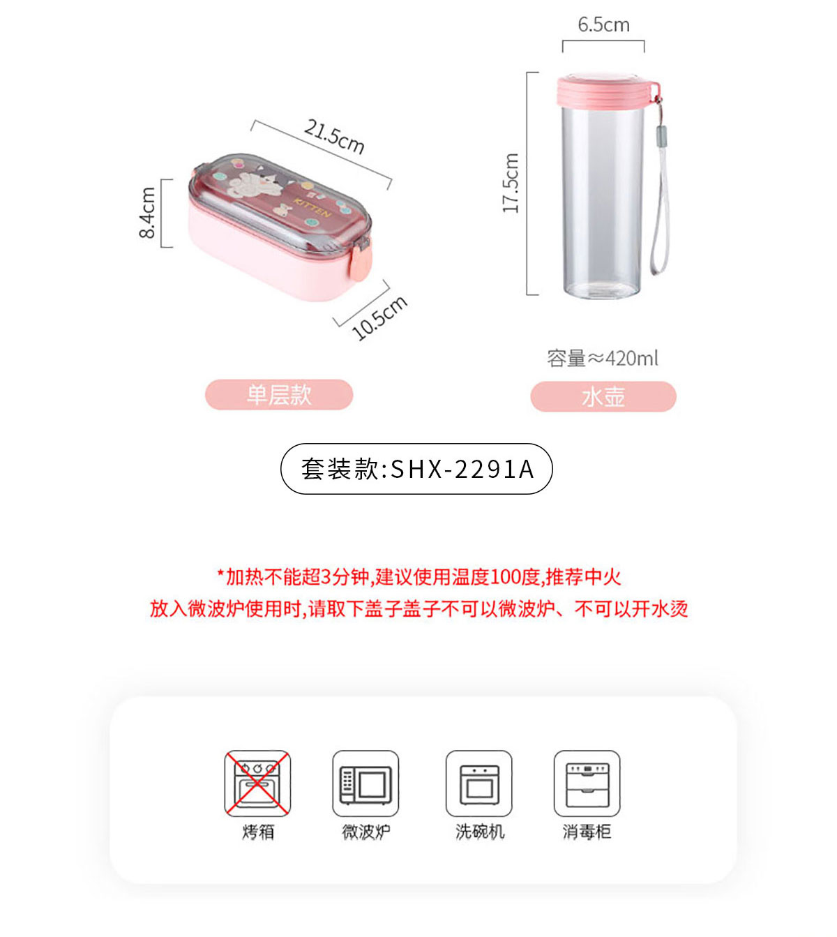 SHX-2291A(單層套裝):飯盒:215*105*84mm 水杯:Φ65*175mm