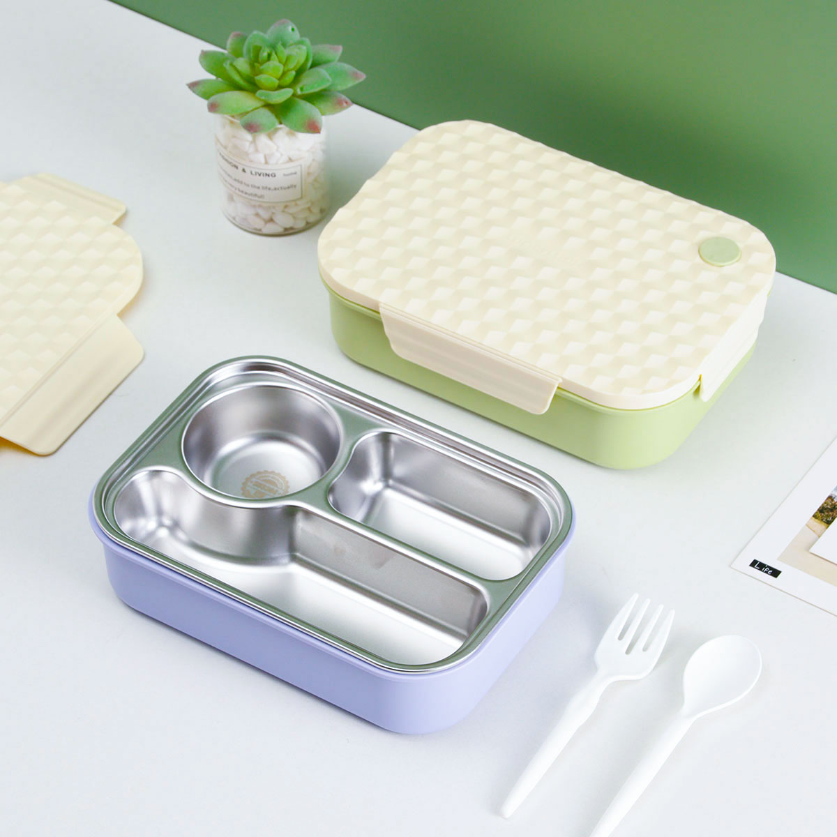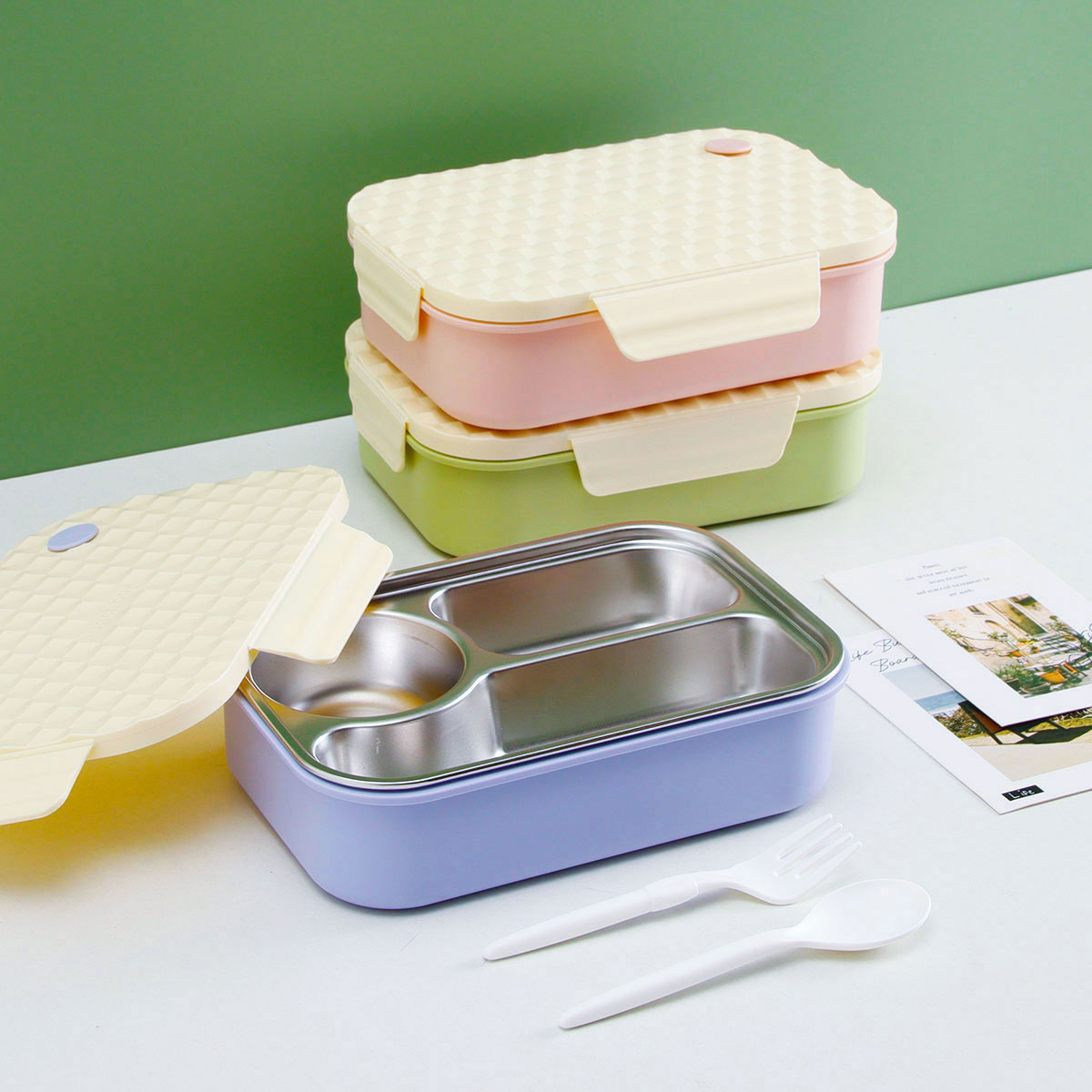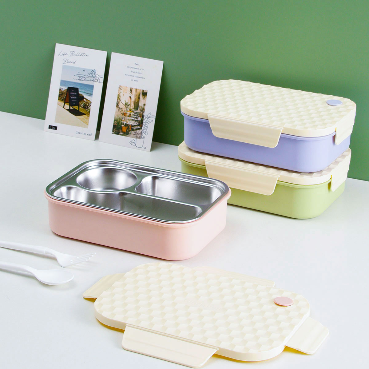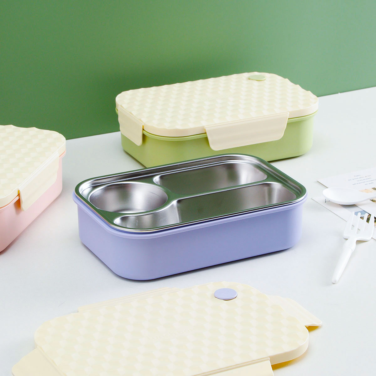菱派三格不銹鋼便當盒