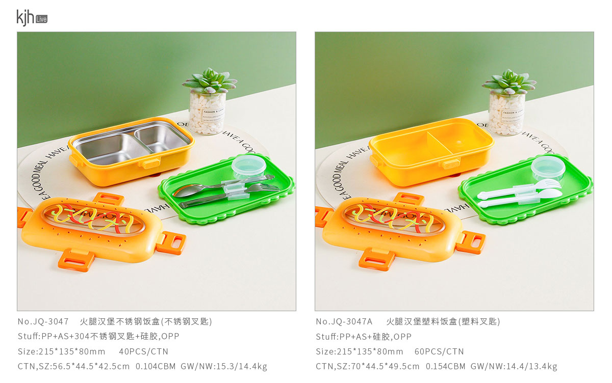火腿漢堡不銹鋼飯盒(不銹鋼叉匙)/塑料飯盒(塑料叉匙)