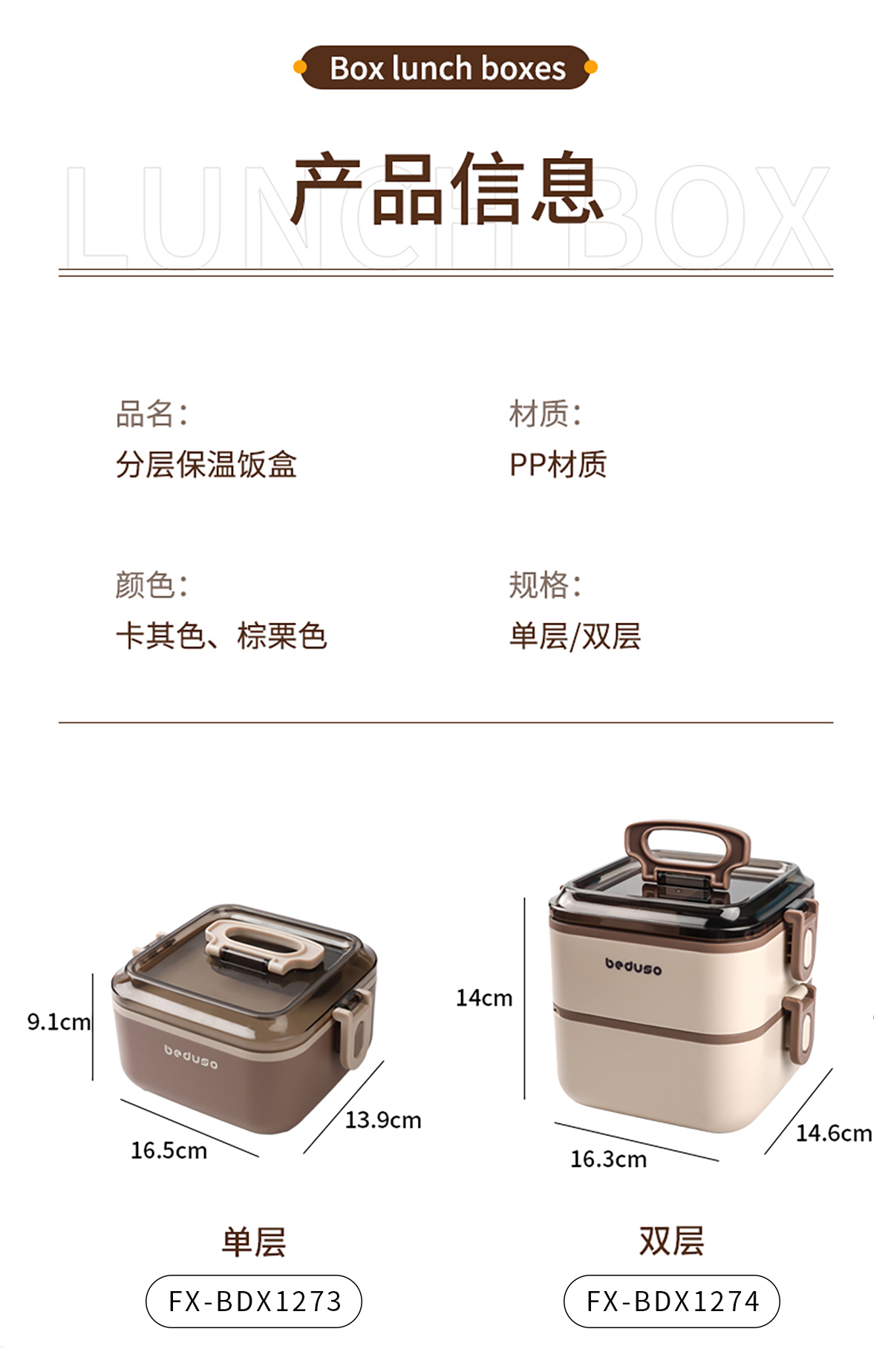 Size: FX-BDX1273(單層):165*139*91mm/1000ml