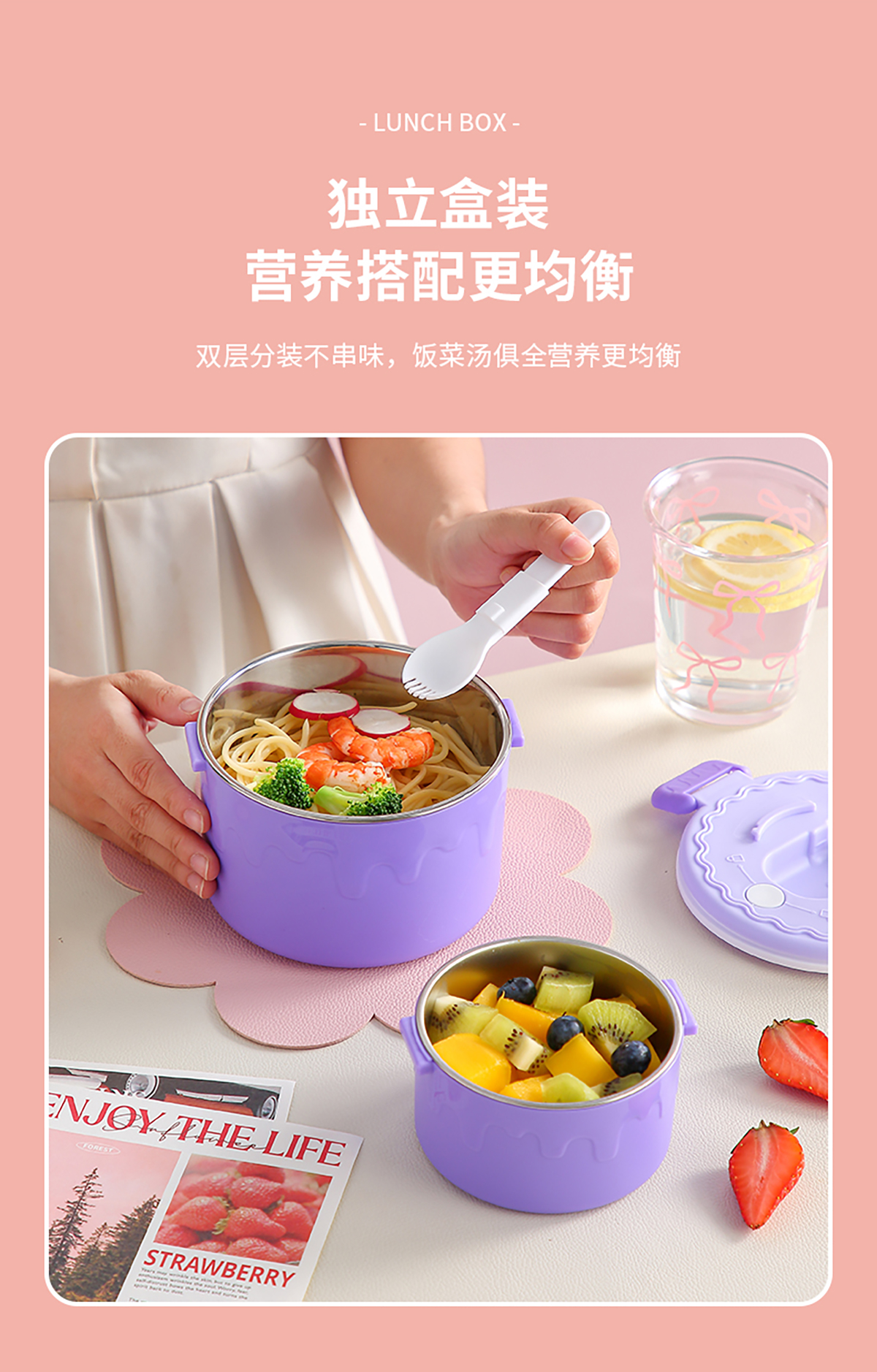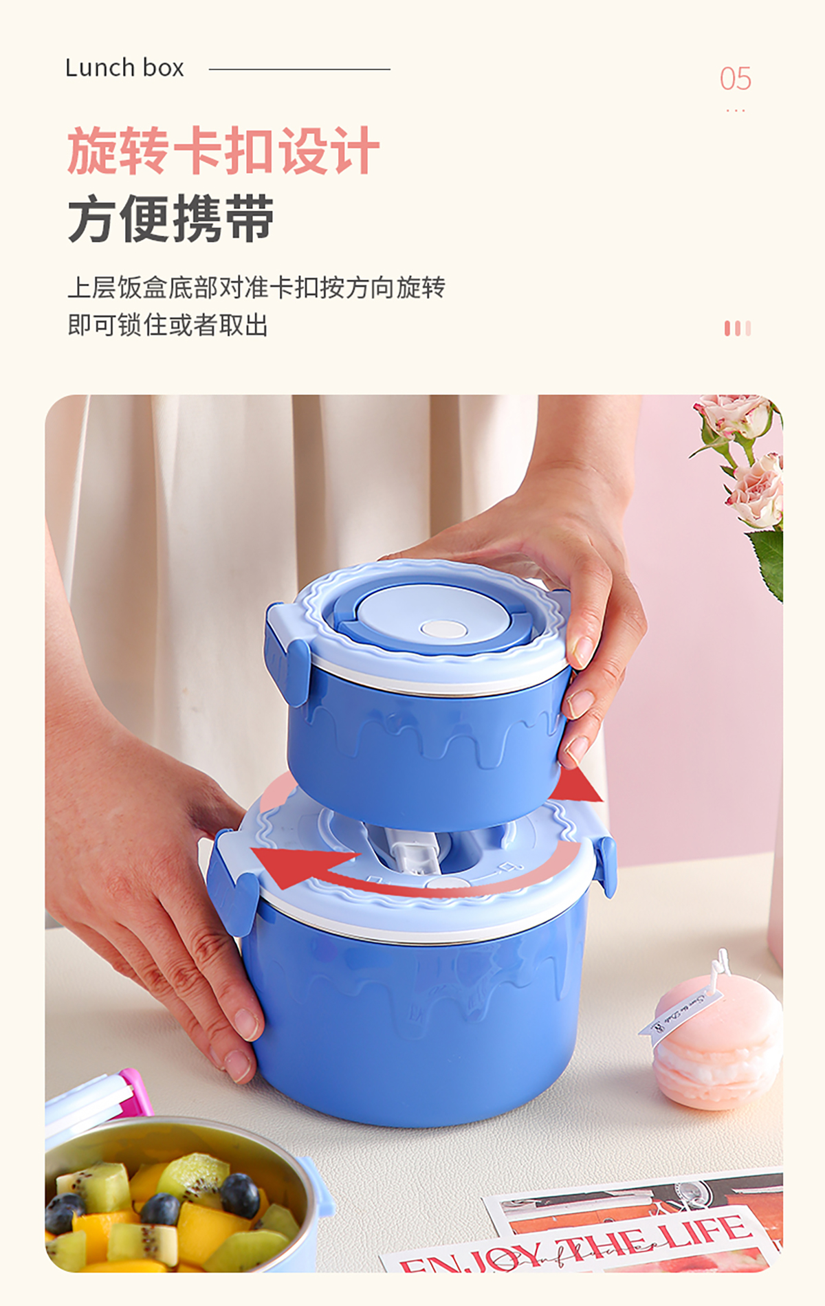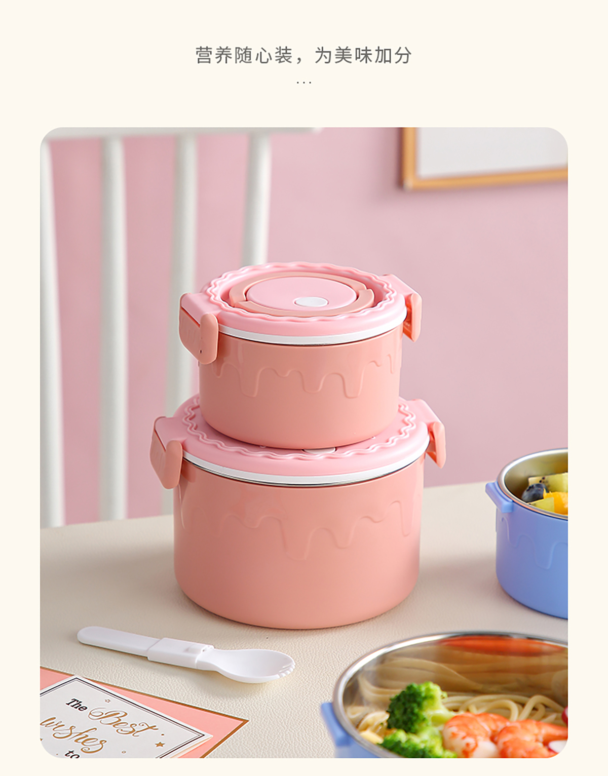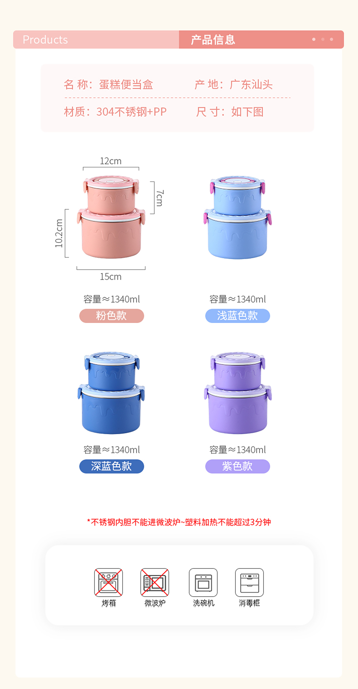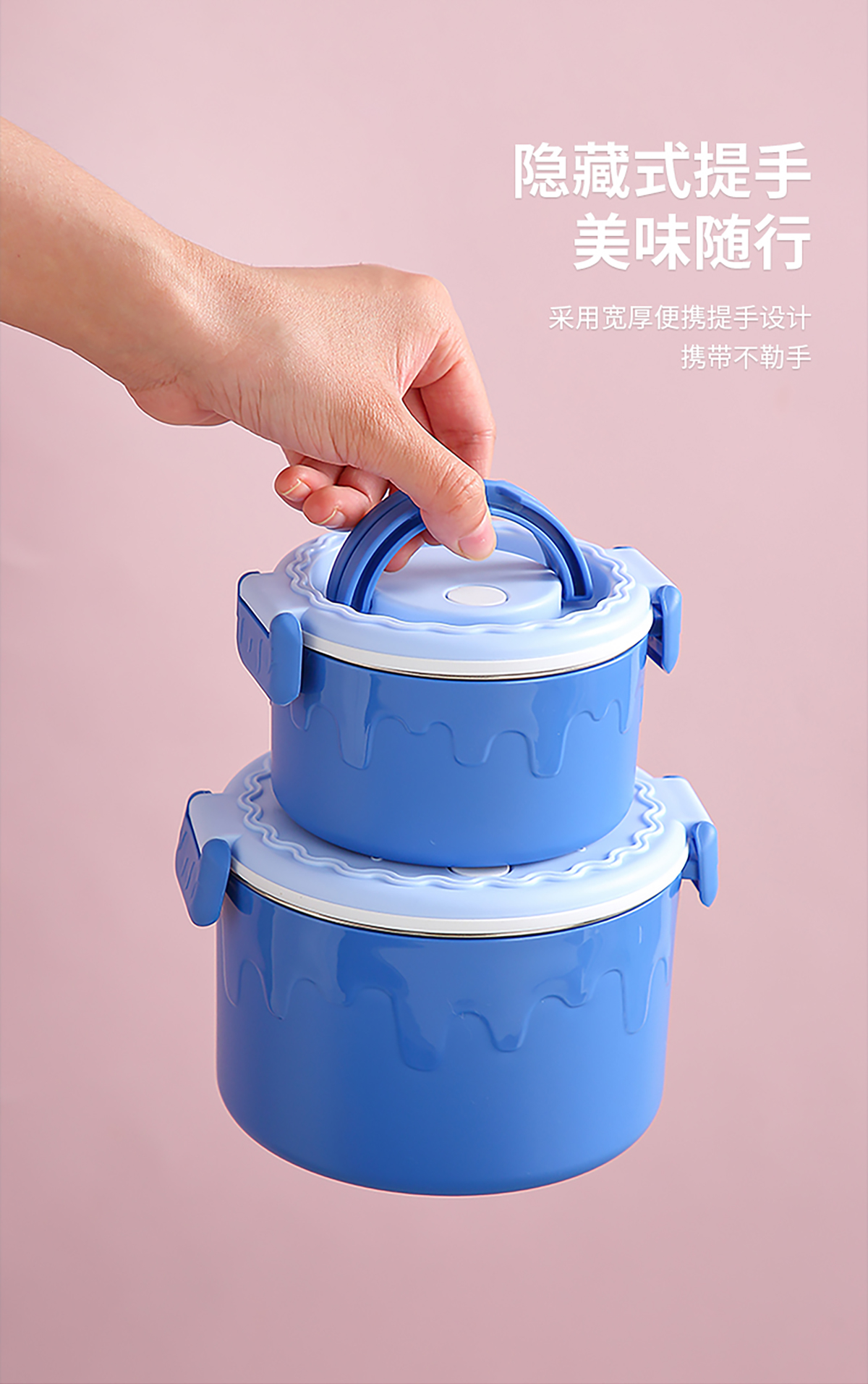 蛋糕圓形不銹鋼雙層飯盒950ml+350ml