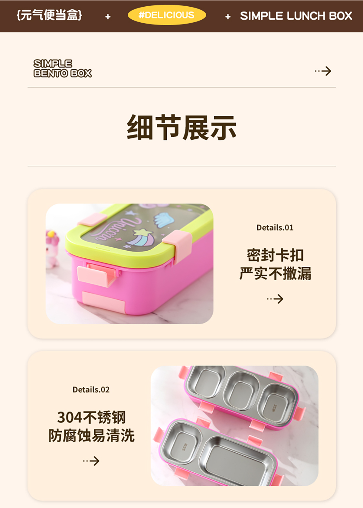 Size: 275*119*73mm(二格600ml/三格500ml)
