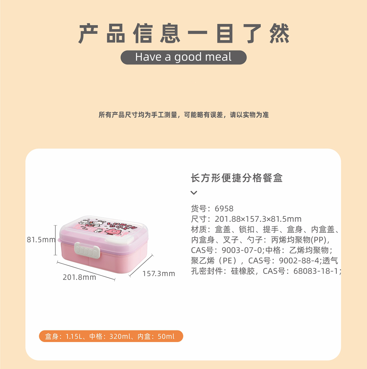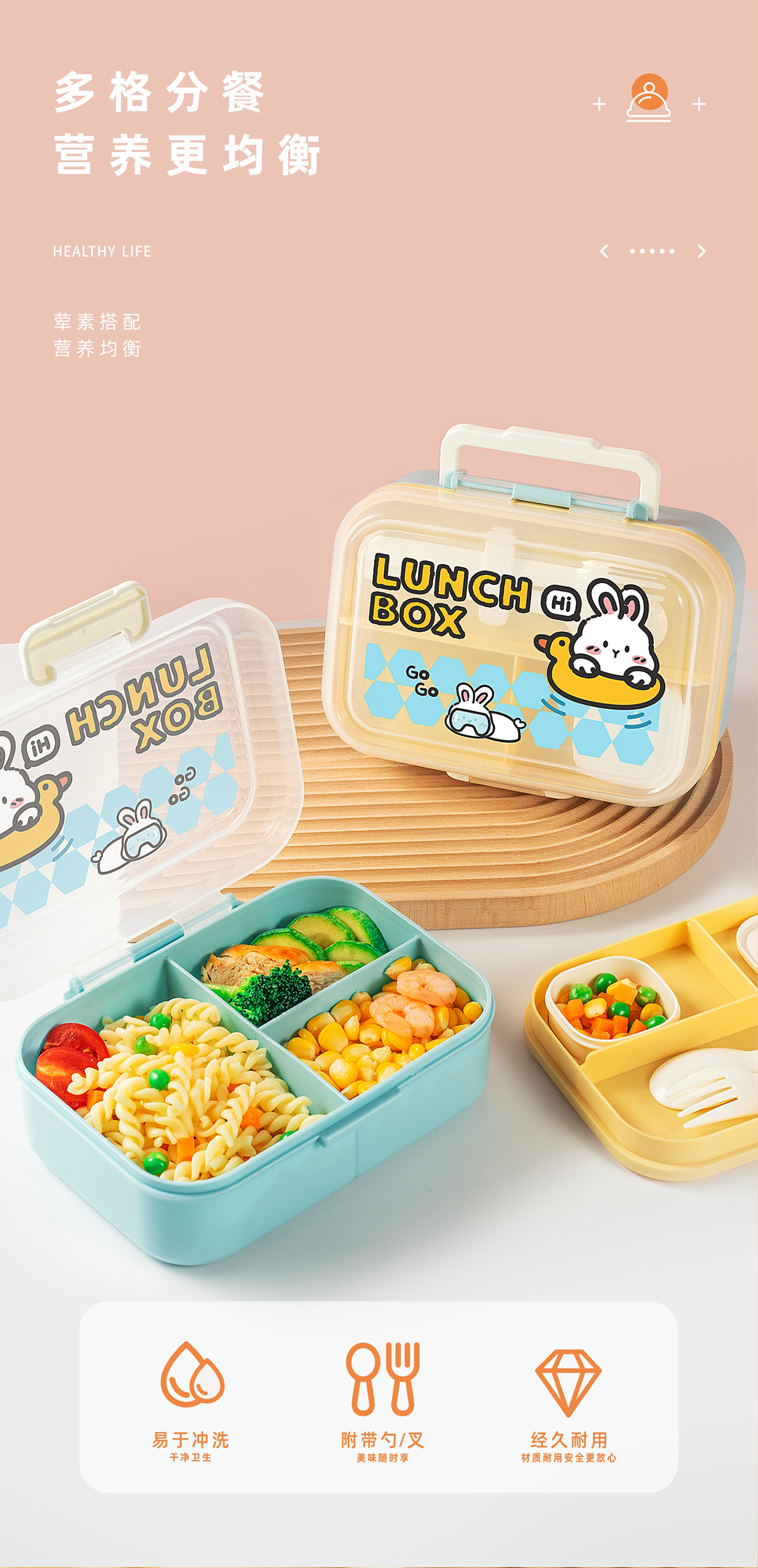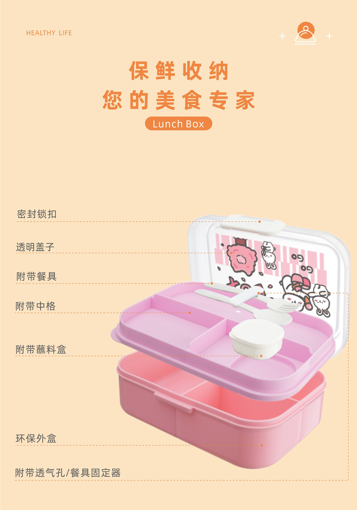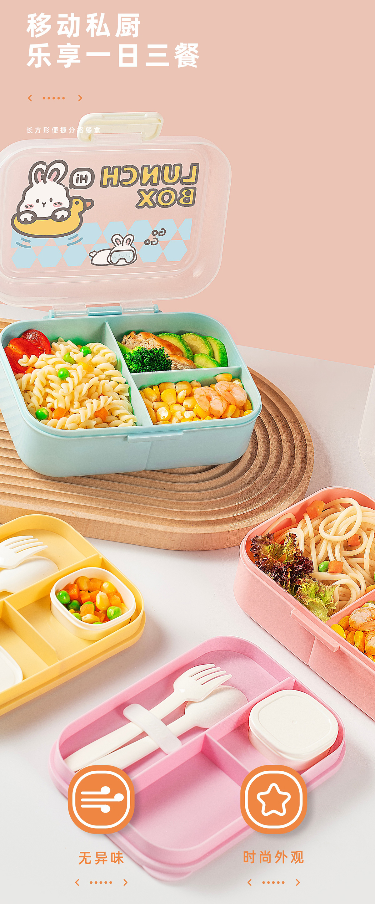 長(zhǎng)方形便攜分格餐盒
