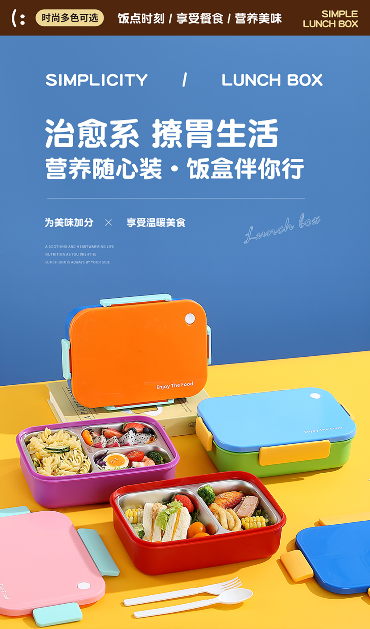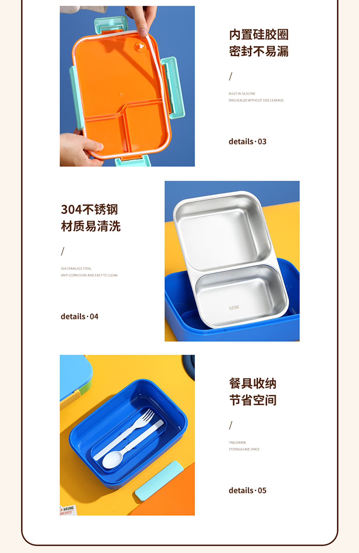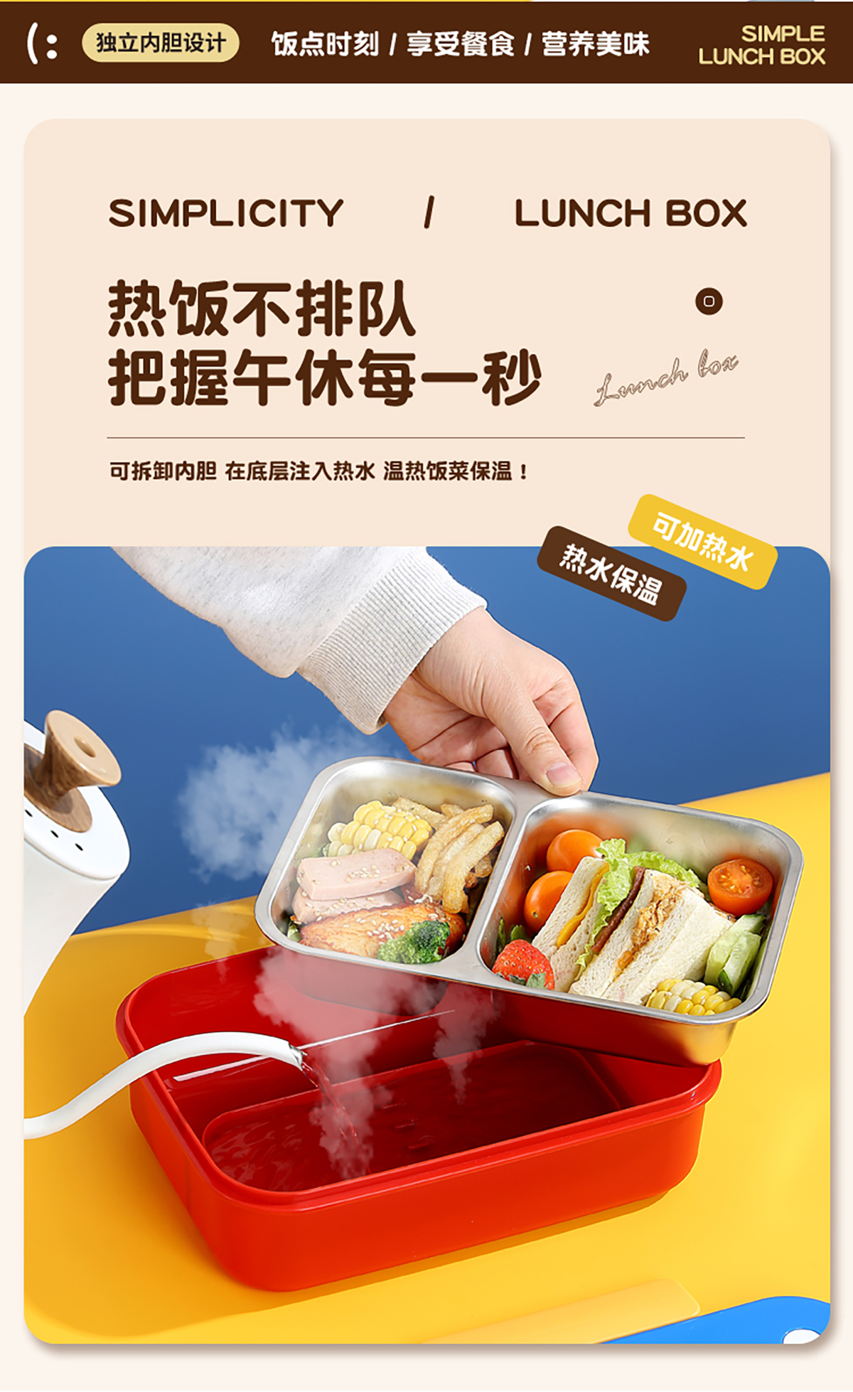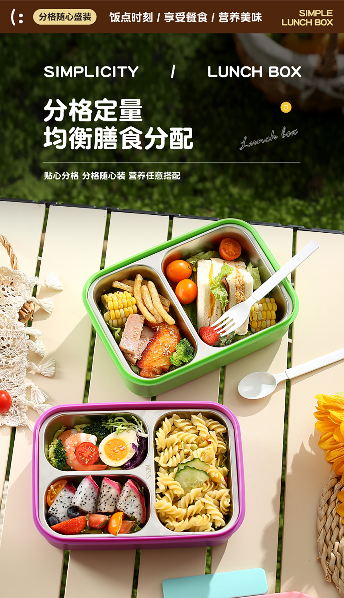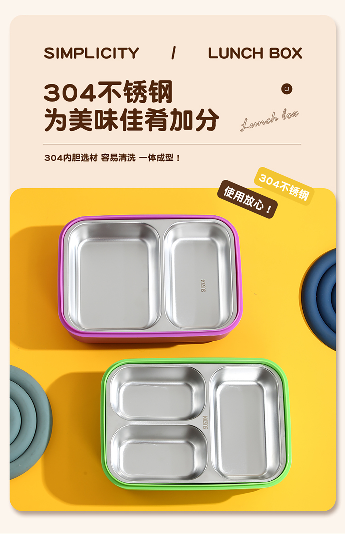 簡約不銹鋼分格飯盒(3分格/2分格)